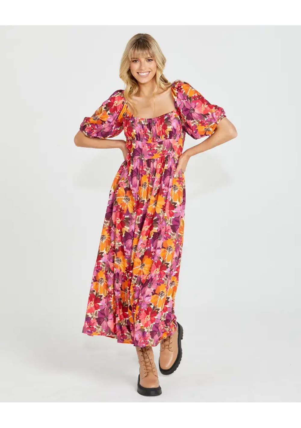 Sass - Yasmin Frill Hem Midi Dress - Berry Floral