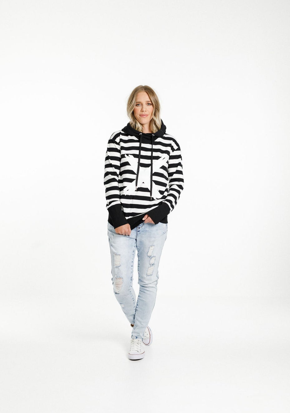 Homelee - Hooded Sweatshirt - Black And White Stripes With White X