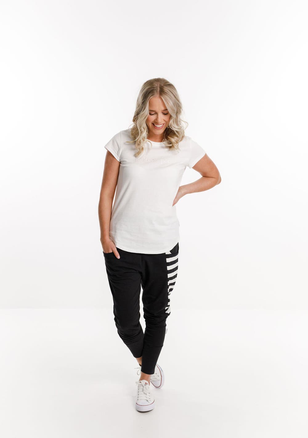 Homelee - Loft Pant - Black With Black & White Stripe Panel