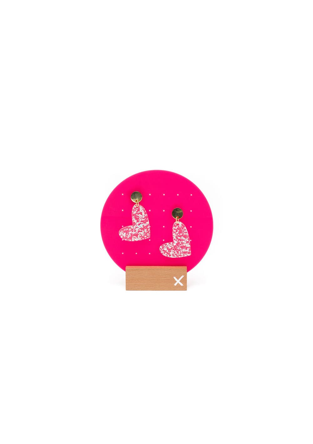 Homelee - Earring Stand - Neon Pink With Wooden Stand