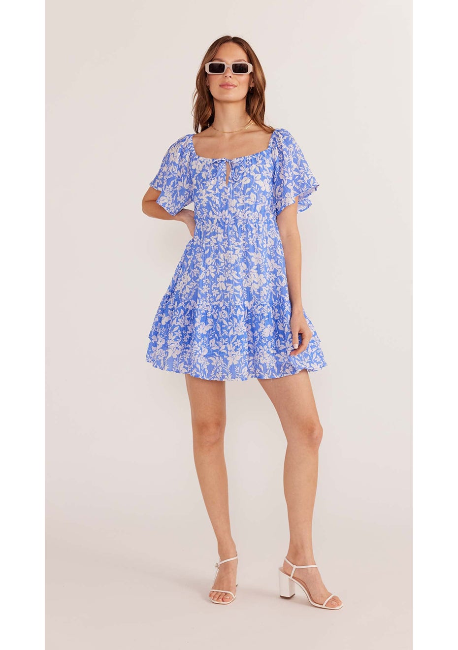 MINKPINK - Waverly Flutter Sleeve Mini Dress - Blue White Floral