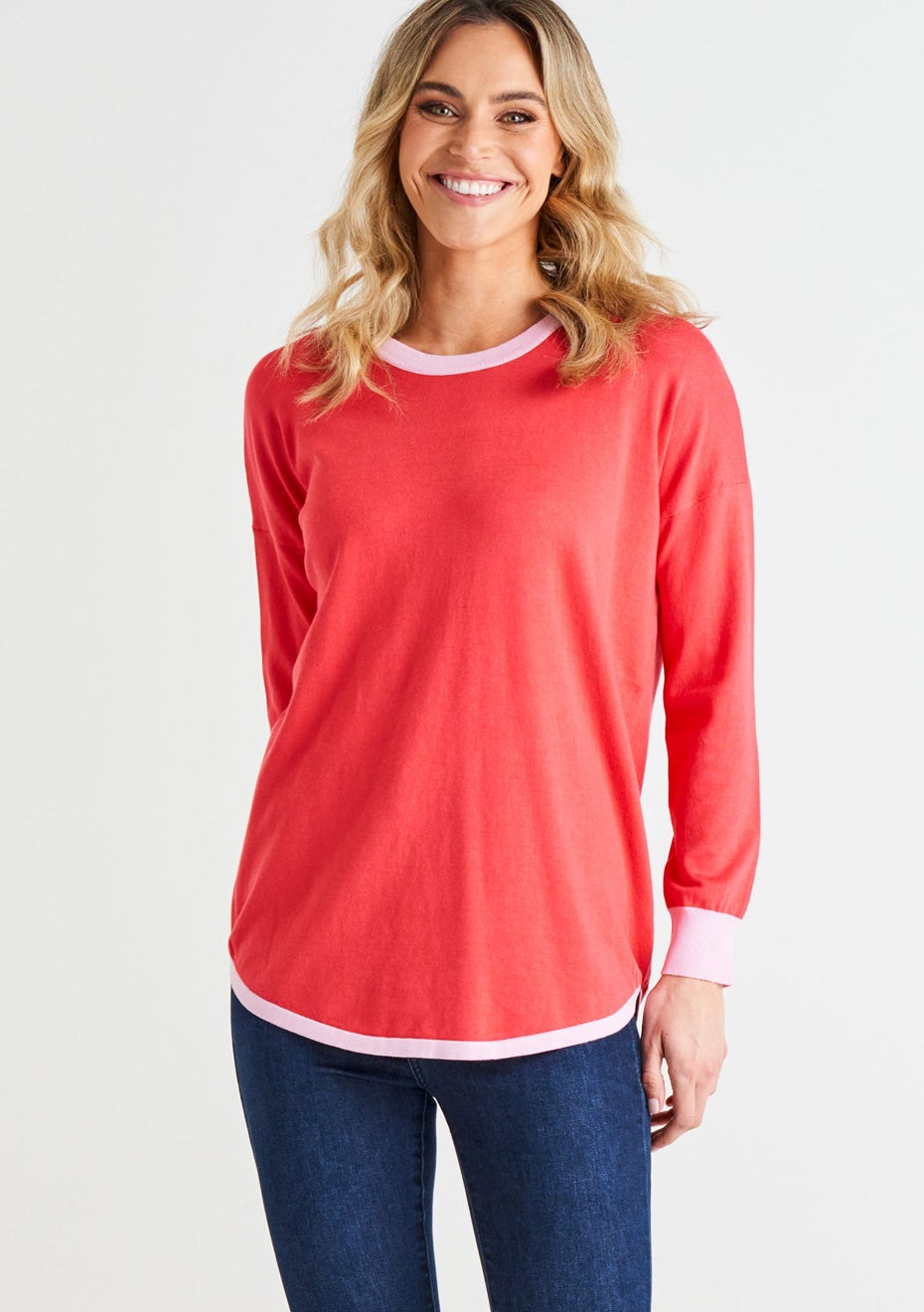 Betty Basics - Sophie Knit Jumper - Pink Tipping