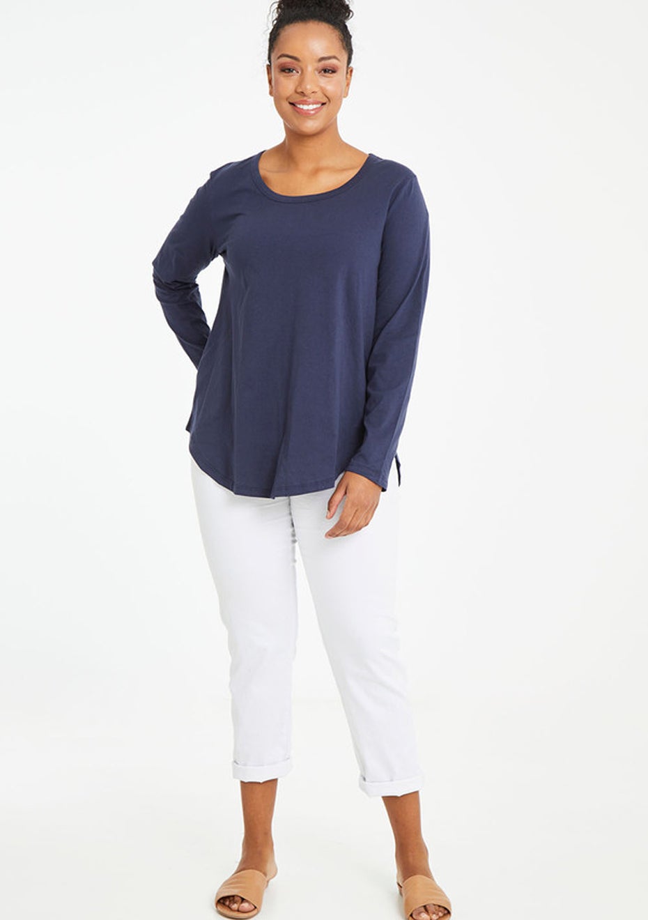 The Megan Long Sleeve Tee from Betty Basics is an all time fan favourite! Loved for its relaxed fit and effortless style, this classic features a flattering scoop neck and long sleeves, perfect for any season. The curved hem at the front and back adds a playful touch, ensuring you stay stylish and comfortable. Ideal for layering or wearing on its own, the Megan Tee is a timeless and versatile wardrobe staple you’ll reach for again and again. - Rounded neckline - Long sleeves - Boxy silhouette - Longline style - Slight high low hem Fabric and Care: 100% Cotton