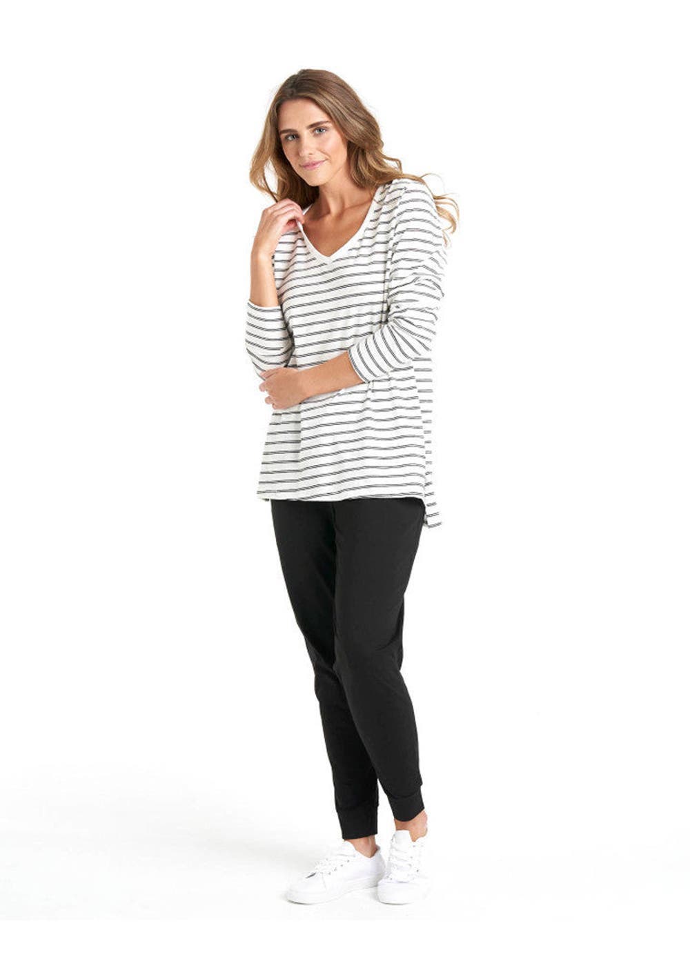 Betty Basics - Bonnie Long Sleeve Top - White/Black Stripe