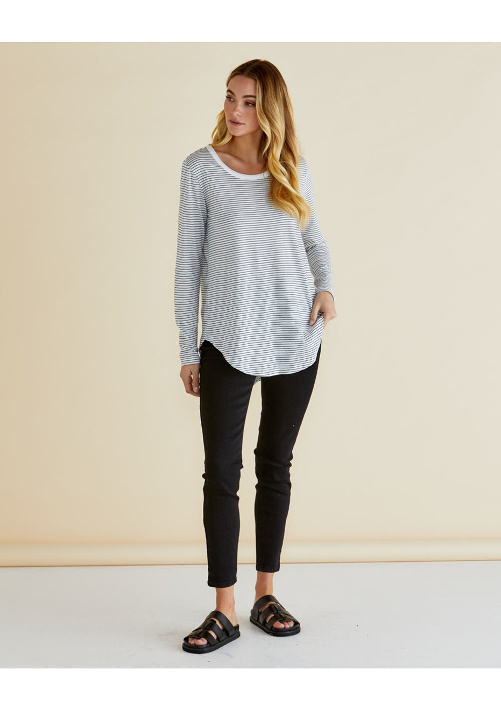 Betty Basics - Megan Long Sleeve Top - White / Black Stripe