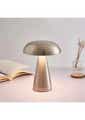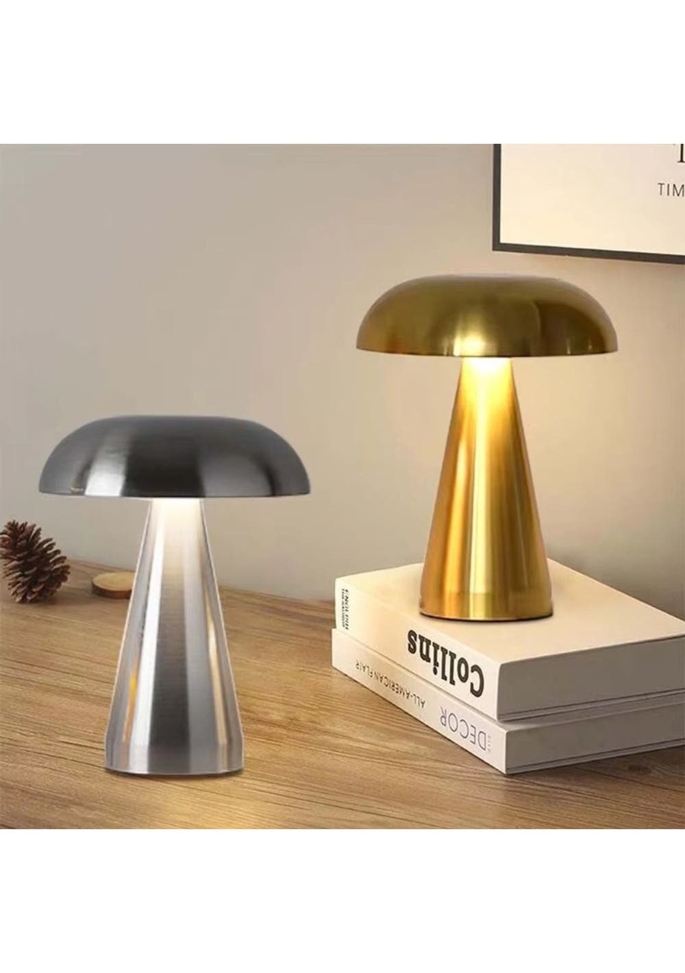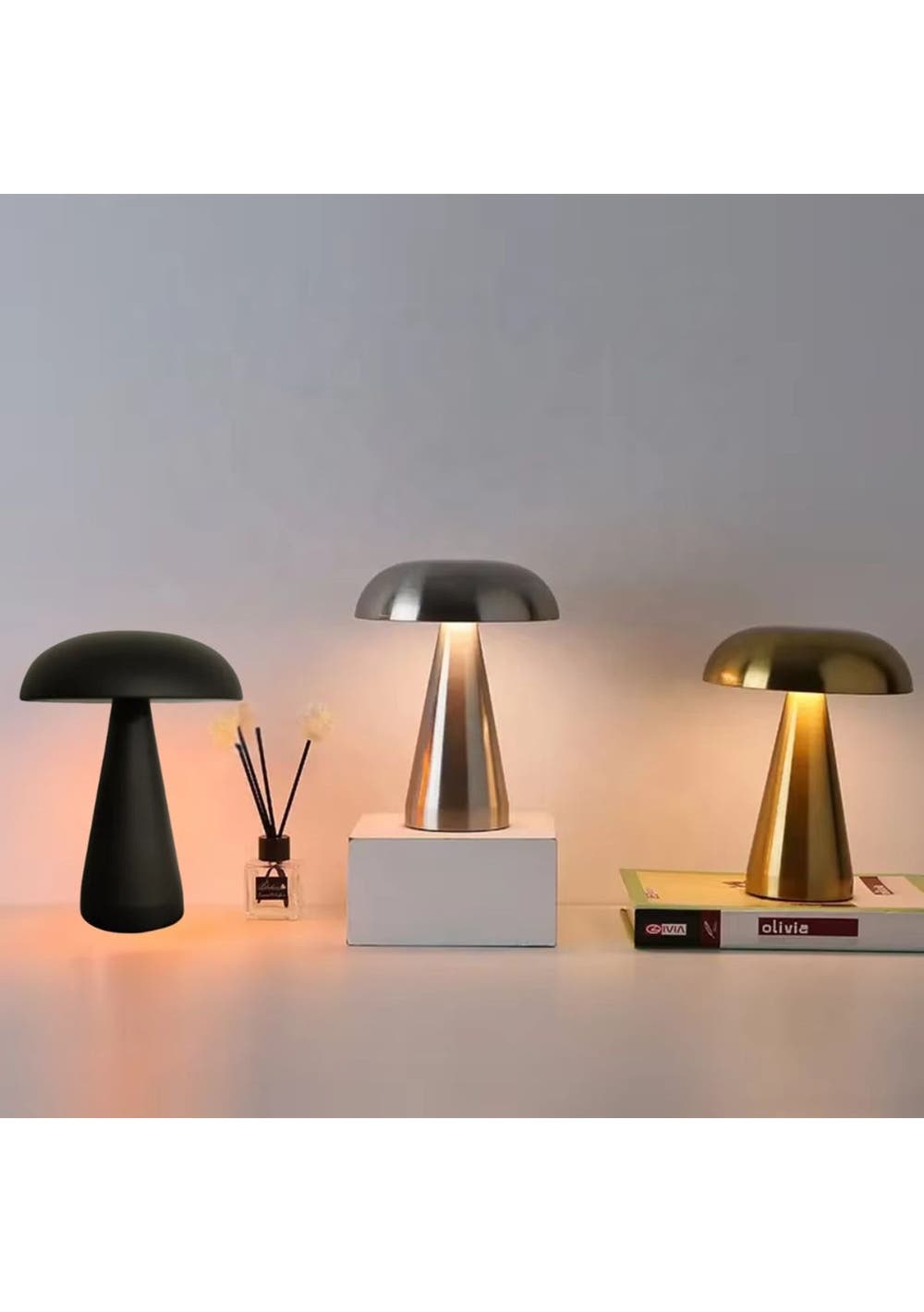 Product Description:This table lamp, featuring a mushroom-inspired design, blends minimalist aesthetics with modern artistry, making it a versatile lighting solution for various settings including bars, tea rooms, restaurants, and even for camping. Constructed from high-quality iron, it ensures a sturdy and durable structure. The lamp is available in elegant gold bronze, silver, and black color options, allowing it to complement diverse interior styles. Its compact size, measuring 15.5 x 20.5cm, makes it suitable for any tabletop.The lamp incorporates a 1.5W LED light source that offers three color temperatures and infinite dimming capabilities. Users can easily adjust the light by touching the top of the lamp to cycle through colors or long-pressing to dim. It is equipped with an 18650-1200mAh rechargeable battery, providing 4-8 hours of illumination on a full charge. The lamp charges via an included USB cable, with a full charging time of 3-4 hours, eliminating the need for frequent battery replacements.Embracing a sleek and elegant Scandinavian design philosophy, this lamp serves as a standout decorative piece that adds a sophisticated touch to any decor. Beyond its aesthetic appeal, it is highly functional. It can be utilized as a study lamp, a decorative accent, or a nightstand ornament, adapting to various needs and environments such as bedrooms or coffee shops.With its tri-color dimming, convenient touch control, and long-lasting rechargeable battery, this table lamp offers both aesthetic enhancement and practical illumination. Its multifunctional design makes it an ideal choice for elevating the ambiance and functionality of any space.Product Specification:Material: IronColor: Black, Silver, GoldLight source: 1.5W three colors + infinitely dimmablePower: 5V-1ABattery capacity: 18650 1200mAh Lithium batteryCharging mode: USB charging cableCharging time: 3-4 hoursWorking time: 4-8 hoursSize: 15.5 x 20.5 cmWeight: 502gFunction: Table LampPackage Inclusion:1 x Mushroom Lamp1 x USB Charging Cable1 x User Manual