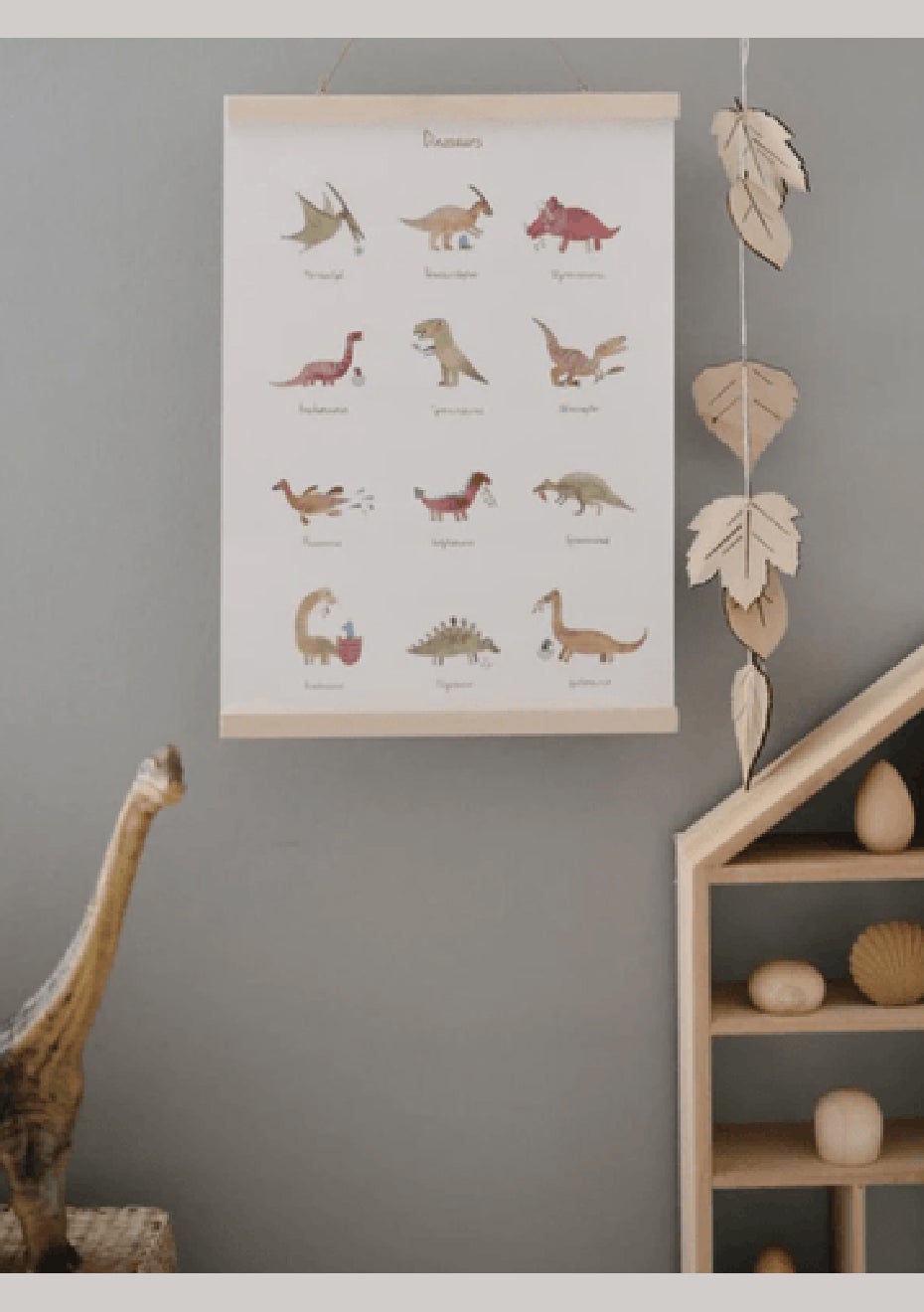 Help your child learn about dinosaurs with this charming, beautifully illustrated Wall Poster. Designed in Sweden, it's part of our series of prints that combine whimsical themes and soft colors with modern design.