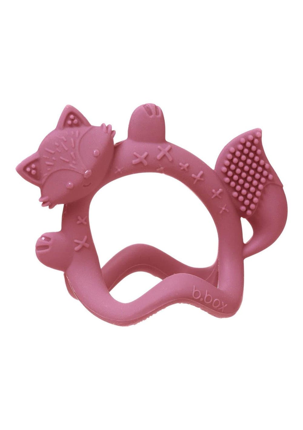 Description Teething babies love to chew. Introducing the B.Box wrist teether. Designed to grasp or wear as a bracelet, the textured design helps to massage sore gums and spark curiosity. Made from soft, food grade silicone, the wrist teether can be used to help provide relief throughout the various stages of the teething journey. Lightweight and easy to hold, the bracelet slips comfortably over baby‚ wrist for the ultimate multi-sensory experience and added hygiene. Suitable for babies 3+ months, use the little fox‚ head to help soothe sore gums when those first milk teeth are on their way or the textured body or tail when the back molars arrive. Made from non-toxic, food grade silicone, steriliser and dishwasher safe (top rack only). Features Suitable for varied stages of the teething journey Great for use on front and back teeth Bracelet design fits baby‚ wrist to help 'stop the drop‚Äô Lightweight and easy to grasp Multi-sensory design Varied textures gently massage sore and achy gums Made from safe and hygienic food grade silicone Dishwasher (top rack only) and steriliser safe