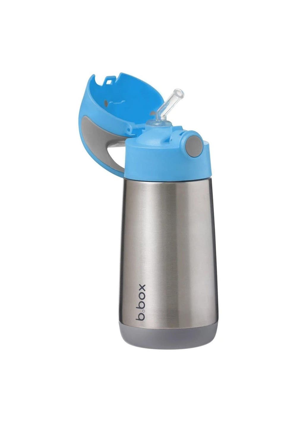Description We've redefined cool with our new insulated drink bottle. Our newest drink bottle has insulating super powers! The double walled stainless steel keeps liquids cool for up to 8 hours and warm for up to 6, so now your little one can stay hydrated whatever the weather. Complete with carry handle and push button opening, designed specifically for little hands. Clean modern design and big kid aesthetic. Available in six fab B.Box colours. Kids love our easy drinking silicone straw top. Parents love no leaks in the bag (when the lid is closed). Replacement straw packs available, sold separately. When using to keep liquids warm - for best performance fill the stainless steel base with hot water for a few minutes to warm it before pouring water out - and filling with warm liquids. Features 12m+ Insulating double wall stainless steel Dishwasher safe, top rack only Silicone straw top Keeps liquids cold for up to 8 hours or warm for up to 6 hours Integrated carry handle 350 ml/12oz Made from stainless steel, polypropylene and silicone BPA, Phthalates, and PVC free Dimensions: 70mm (d) x 75mm (w) x 200mm (h)