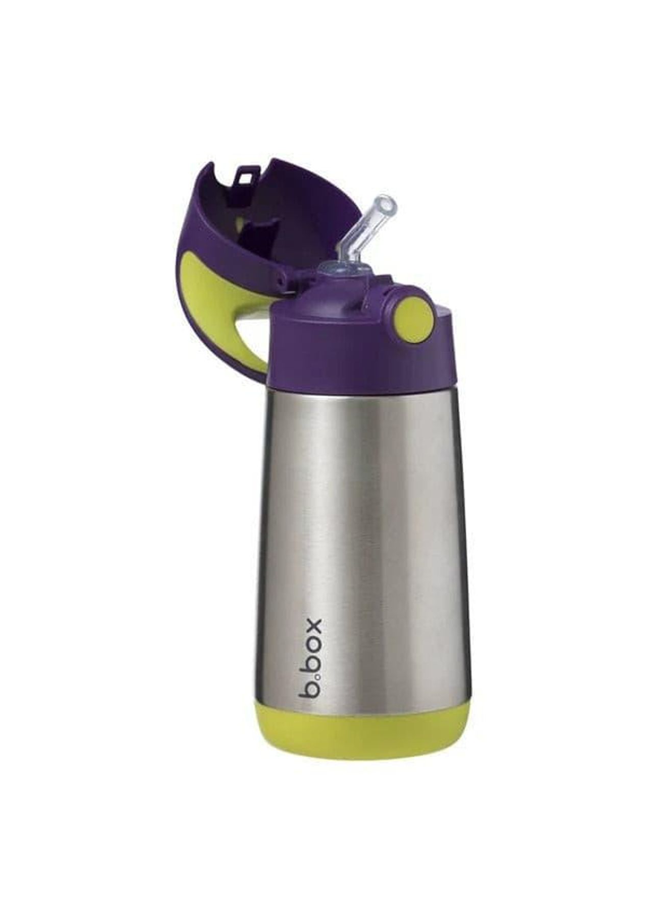 Description We've redefined cool with our new insulated drink bottle. Our newest drink bottle has insulating super powers! The double walled stainless steel keeps liquids cool for up to 8 hours and warm for up to 6, so now your little one can stay hydrated whatever the weather. Complete with carry handle and push button opening, designed specifically for little hands. Clean modern design and big kid aesthetic. Available in six fab B.Box colours. Kids love our easy drinking silicone straw top. Parents love no leaks in the bag (when the lid is closed). Replacement straw packs available, sold separately. When using to keep liquids warm - for best performance fill the stainless steel base with hot water for a few minutes to warm it before pouring water out - and filling with warm liquids. Features 12m+ Insulating double wall stainless steel Dishwasher safe, top rack only Silicone straw top Keeps liquids cold for up to 8 hours or warm for up to 6 hours Integrated carry handle 350 ml/12oz Made from stainless steel, polypropylene and silicone BPA, Phthalates, and PVC free Dimensions: 70mm (d) x 75mm (w) x 200mm (h)