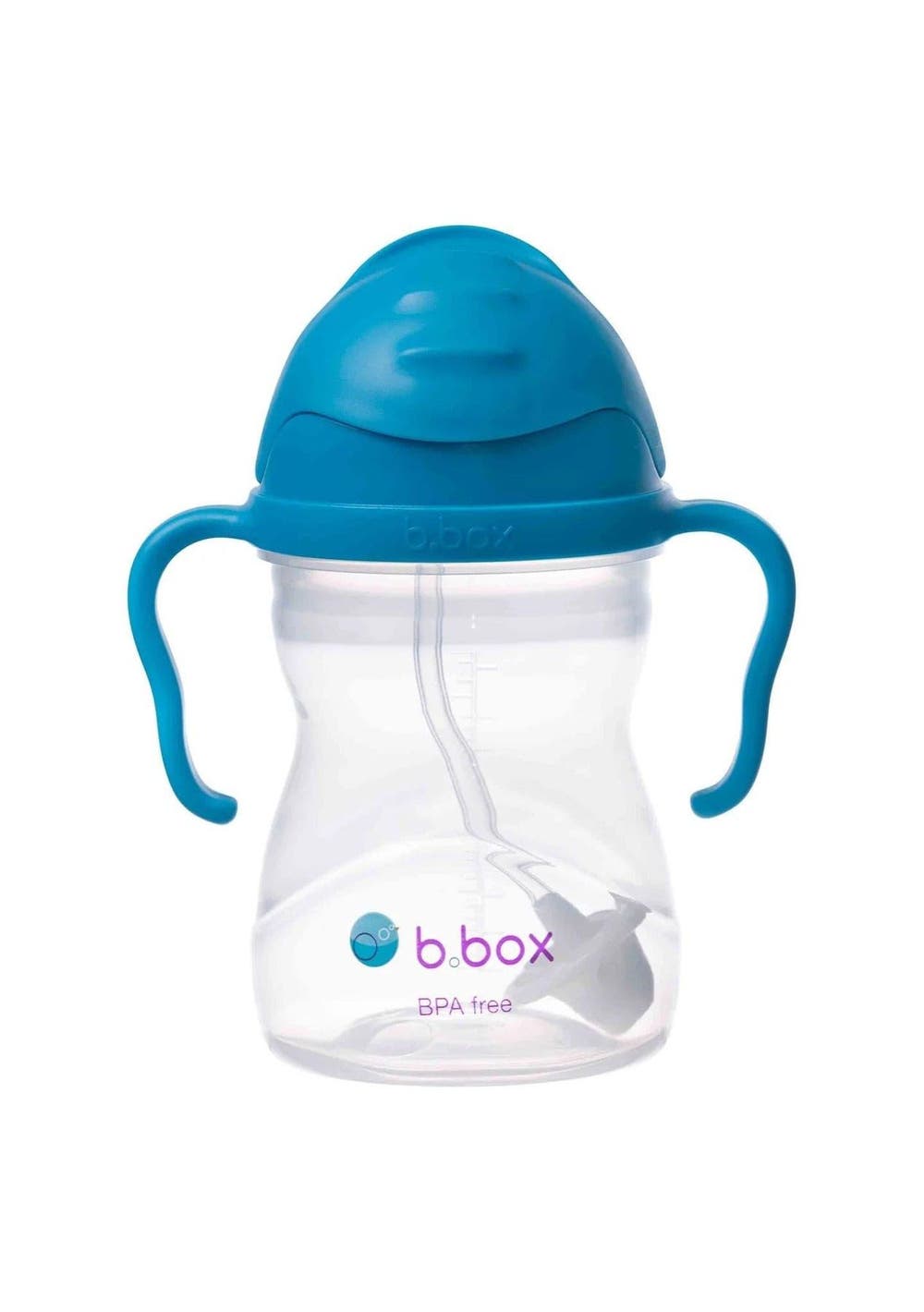 Description Discover our award-winning b.box sippy cup with an innovative weighted straw that moves with the liquid for easy drinking at any angle—no leaks, even with warm water! Perfect for transitioning from bottle or breastfeeding, it features easy-grip handles, a flip-top lid, and a premium matte finish. Features 6m+ Weighted straw moves with the liquid, whatever angle the cup is held Simple flip top lid Base also fits training cup lid and spout cup lid Dishwasher safe Sippy cup base is microwave safe. Do not microwave sippy cup lid and straw Made from PP and silicone, steel weighted ball Dimensions (cup with lid) 15 x 12 x 7.5cm 240mls/8oz capacity BPA, Phthalates and PVC free Care Instructions Sippy cup base is microwave safe. Heat in intervals of 30 seconds and stir thoroughly. Test temperature of contents before serving. Do not microwave sippy cup lid and straw.
