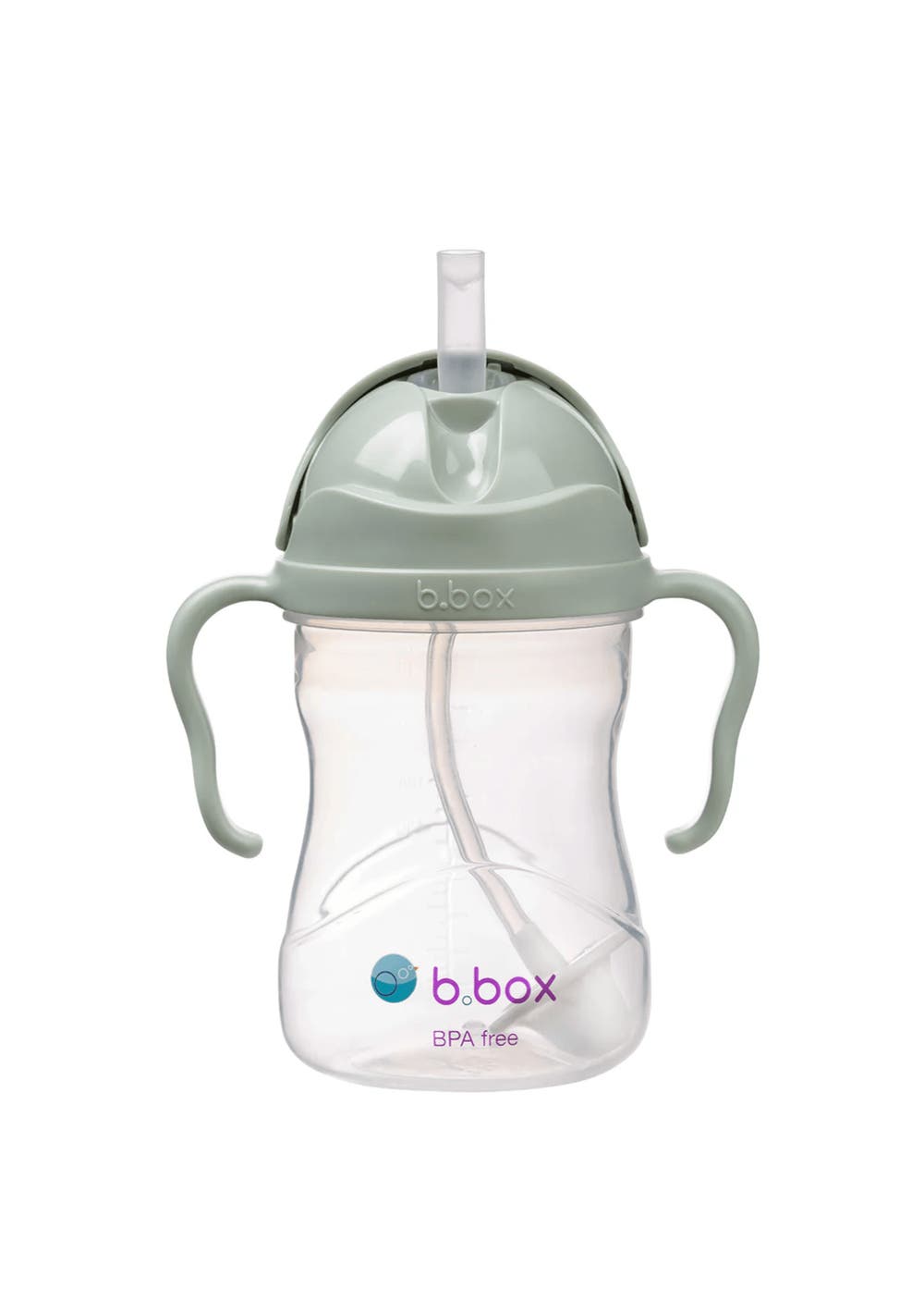 Description Discover our award-winning b.box sippy cup with an innovative weighted straw that moves with the liquid for easy drinking at any angle—no leaks, even with warm water! Perfect for transitioning from bottle or breastfeeding, it features easy-grip handles, a flip-top lid, and a premium matte finish. Features 6m+ Weighted straw moves with the liquid, whatever angle the cup is held Simple flip top lid Base also fits training cup lid and spout cup lid Dishwasher safe Sippy cup base is microwave safe. Do not microwave sippy cup lid and straw Made from PP and silicone, steel weighted ball Dimensions (cup with lid) 15 x 12 x 7.5cm 240mls/8oz capacity BPA, Phthalates and PVC free Care Instructions Sippy cup base is microwave safe. Heat in intervals of 30 seconds and stir thoroughly. Test temperature of contents before serving. Do not microwave sippy cup lid and straw.