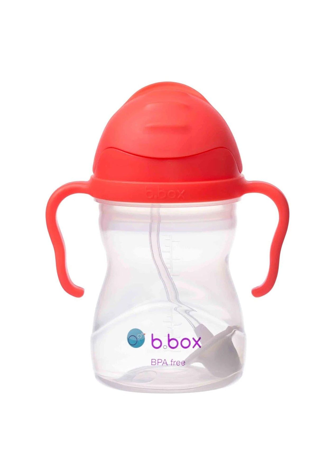 Description Discover our award-winning b.box sippy cup with an innovative weighted straw that moves with the liquid for easy drinking at any angle—no leaks, even with warm water! Perfect for transitioning from bottle or breastfeeding, it features easy-grip handles, a flip-top lid, and a premium matte finish. Features 6m+ Weighted straw moves with the liquid, whatever angle the cup is held Simple flip top lid Base also fits training cup lid and spout cup lid Dishwasher safe Sippy cup base is microwave safe. Do not microwave sippy cup lid and straw Made from PP and silicone, steel weighted ball Dimensions (cup with lid) 15 x 12 x 7.5cm 240mls/8oz capacity BPA, Phthalates and PVC free Care Instructions Sippy cup base is microwave safe. Heat in intervals of 30 seconds and stir thoroughly. Test temperature of contents before serving. Do not microwave sippy cup lid and straw.