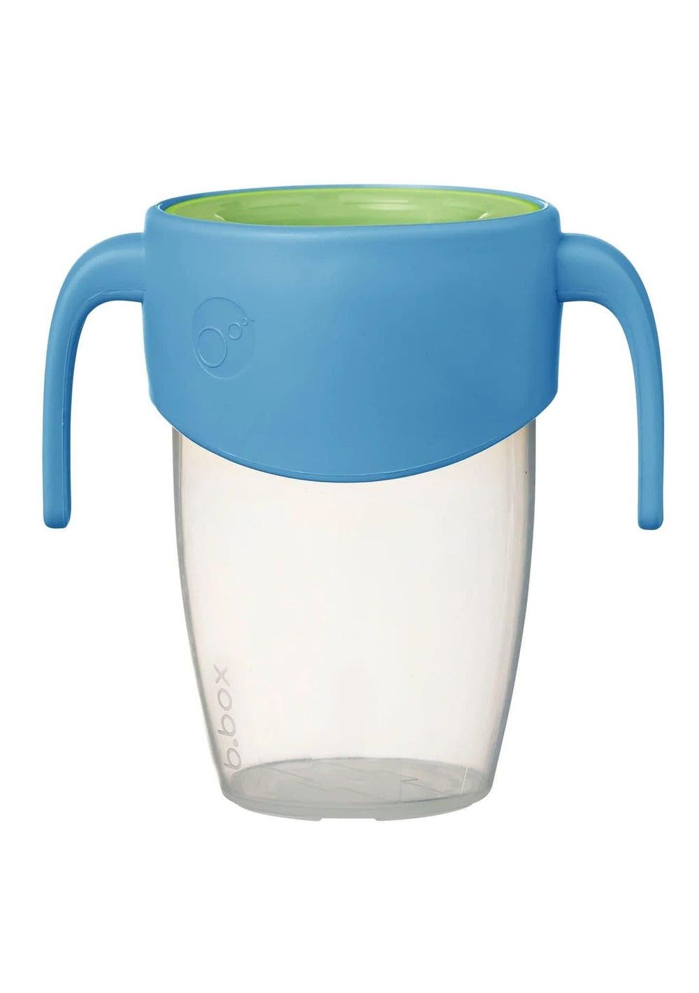 Description Meet our 360 cup… supporting independent drinking, with a twist! Great for littlies that are learning to drink, our 360 cup lets kids sip from a super-soft silicone, lip-activated 360 ̊ drinking rim. Offering flow control (the firmer they press the more liquid will flow) and less spills, the silicone rim seals closed when not in use...so clever! Wide profile handles are easy for little hands to grip for self-led drinking, and offer two-mode function for use at home and on-the-go. Twist handles down to expose the silicone rim for easy drinking, then twist handles up to lock and seal for no leaks in bags or prams, plus the silicone rim stays clean and hygienic. The clear lid lets kids see from the outside in, to support tilting and drinking and hand-eye coordination. The clear cup lets folks monitor daily hydration. 250ml capacity suitable for cool and warm liquid. Cup base is microwave safe. All parts are dishwasher + steriliser safe. Available in 4 fun colour combinations. please note: the base of the 360 cup is not compatible with other B.Box bottles or cups (so you cannot use it with a spout, sippy, or training lid, sorry!) Features 360˚ design lets kids drink from anywhere around the rim lip activated silicone seal helps control the flow, no spills. wide, easy grip handles for little hands support independent drinking two mode function; handles down drinking mode, handles up travel mode twist-lock design is perfect for on-the-go, stops leaks and keeps drinking rim hygienic clear lid lets kids see from the outside in and supports hand-eye coordination clear cup base lets parents monitor water levels 250ml capacity dishwasher safe (top rack only), steriliser safe