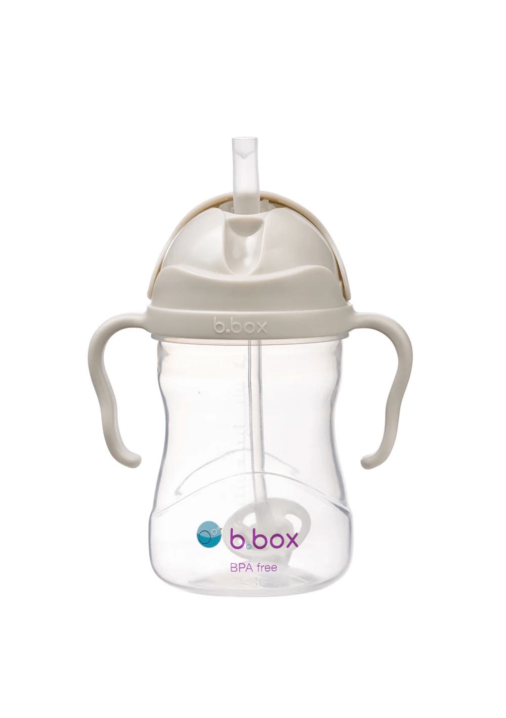 Description Discover our award-winning b.box sippy cup with an innovative weighted straw that moves with the liquid for easy drinking at any angle—no leaks, even with warm water! Perfect for transitioning from bottle or breastfeeding, it features easy-grip handles, a flip-top lid, and a premium matte finish. Features 6m+ Weighted straw moves with the liquid, whatever angle the cup is held Simple flip top lid Base also fits training cup lid and spout cup lid Dishwasher safe Sippy cup base is microwave safe. Do not microwave sippy cup lid and straw Made from PP and silicone, steel weighted ball Dimensions (cup with lid) 15 x 12 x 7.5cm 240mls/8oz capacity BPA, Phthalates and PVC free Care Instructions Sippy cup base is microwave safe. Heat in intervals of 30 seconds and stir thoroughly. Test temperature of contents before serving. Do not microwave sippy cup lid and straw.
