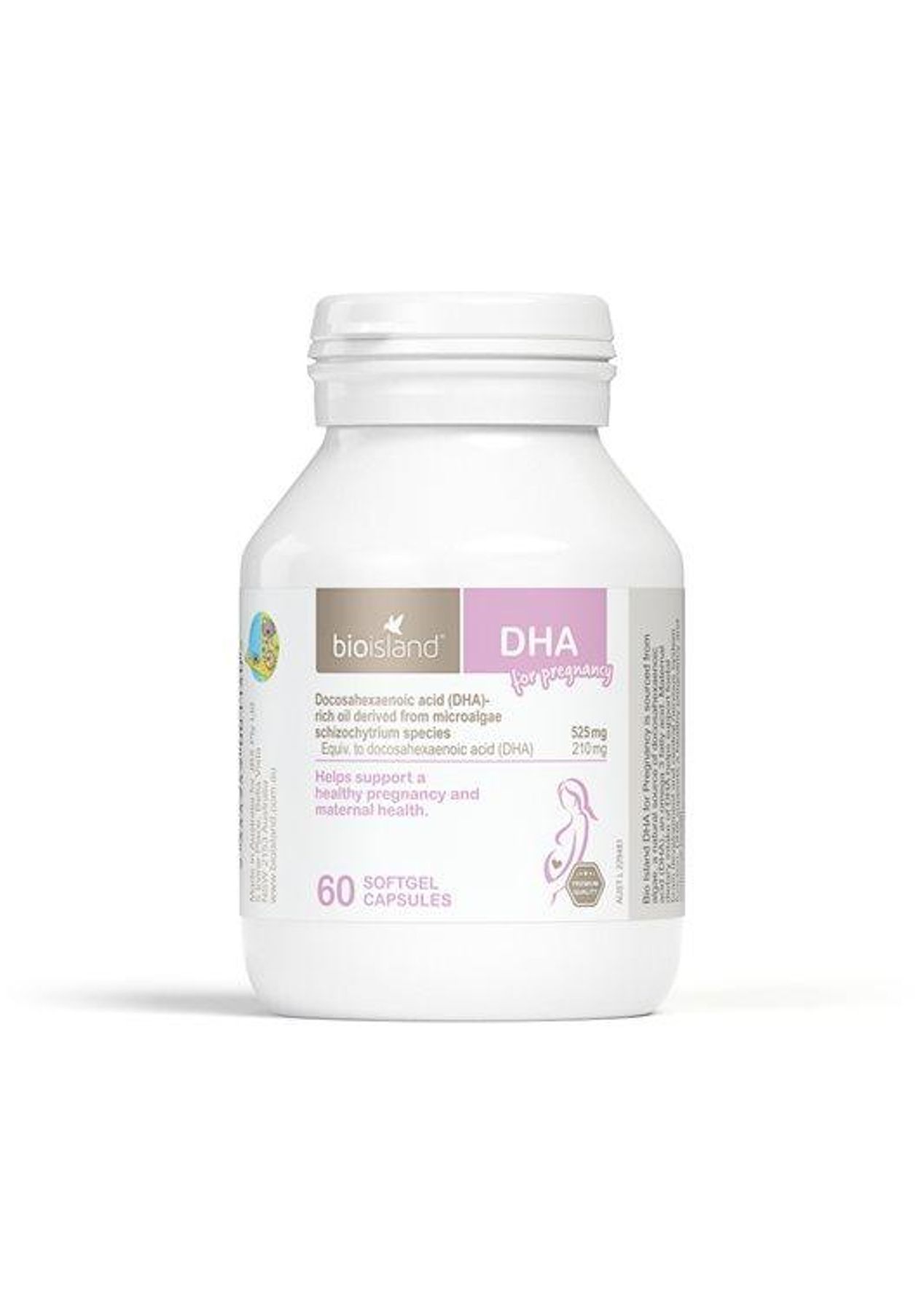 bio island DHA for pregnancy AUST L 229481 Each capsule contains a natural algae source of DHA, an omega 3 fatty acid. Maternal dietary intake of DHA helps support healthy foetal brain development and central nervous system function. Bio island DHA for pregnancy helps support a healthy pregnancy and maternal health. Made in Australia and is suitable for preconception, pregnancy, and breastfeeding, with easy-to-swallow mini soft gel capsules. Ingredients Docosahexaenoic acid (DHA)-rich oil derived from microalgae Schizochytrium species 525mg Equiv to docosahexaenoic acid (DHA) 210mg Nutritional supplements can only be of assistance if the dietary intake is inadequate. Advise your doctor of any medicine you take during pregnancy, particularly in your first trimester. If you are concerned about the health of yourself or your baby, talk to your healthcare practitioner. Directions for Use Women trying to conceive and pregnant women between 0-10 weeks in their pregnancy; take 1 capsule daily, or as directed by your healthcare professional. Pregnant women between 10-36 weeks and above and breastfeeding mothers take 2-3 capsules daily, or as directed by your healthcare professional. STORE: below 30°C in a dry place away from direct sunlight. Keep out of reach of children. Please take with a meal.