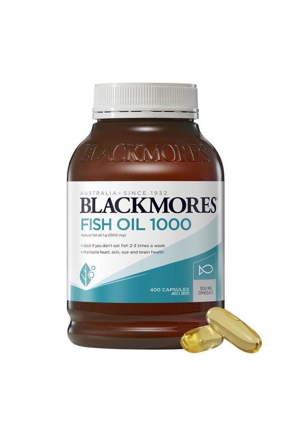 Description Blackmores Fish Oil 1000 provides a high-quality natural source of omega-3. It contains 300 mg of omega-3 per capsule to support heart, skin, eye and brain health and is ideal if you don’t eat fish 2-3 times per week. Ingredients Fish oil (natural) 1 g (1000 mg) containing omega-3 marine triglycerides 300 mg Suggested Use For heart, skin and general health:Adults - Take 2 capsules a day with a meal, or as professionally prescribedFor brain and eye health:Adults - Take 3 capsules a day with a meal, or as professionally prescribed For healthy growth and development in children:Children 1+ years - Take 2 capsules a day (ages 1 - 12 years, pierce or squeeze into milk, juice or cereal) Children under 1 year - Only as professionally prescribed Additional Product Information Warning: High doses of fish oil (10 or more capsules per day) may increase the risk of bleeding with blood-thinning medications and should not be taken in the week before surgery Vitamin supplements should not replace a balanced diet Always read the label Use only as directed Supplements may only be of assistance if dietary intake is inadequate Contains fish, sulphites and soya bean products If you have any pre-existing conditions, or are on any medications always talk to your health professional before use Some products should be ceased at least two weeks before any elective surgery, please confirm with your health professional