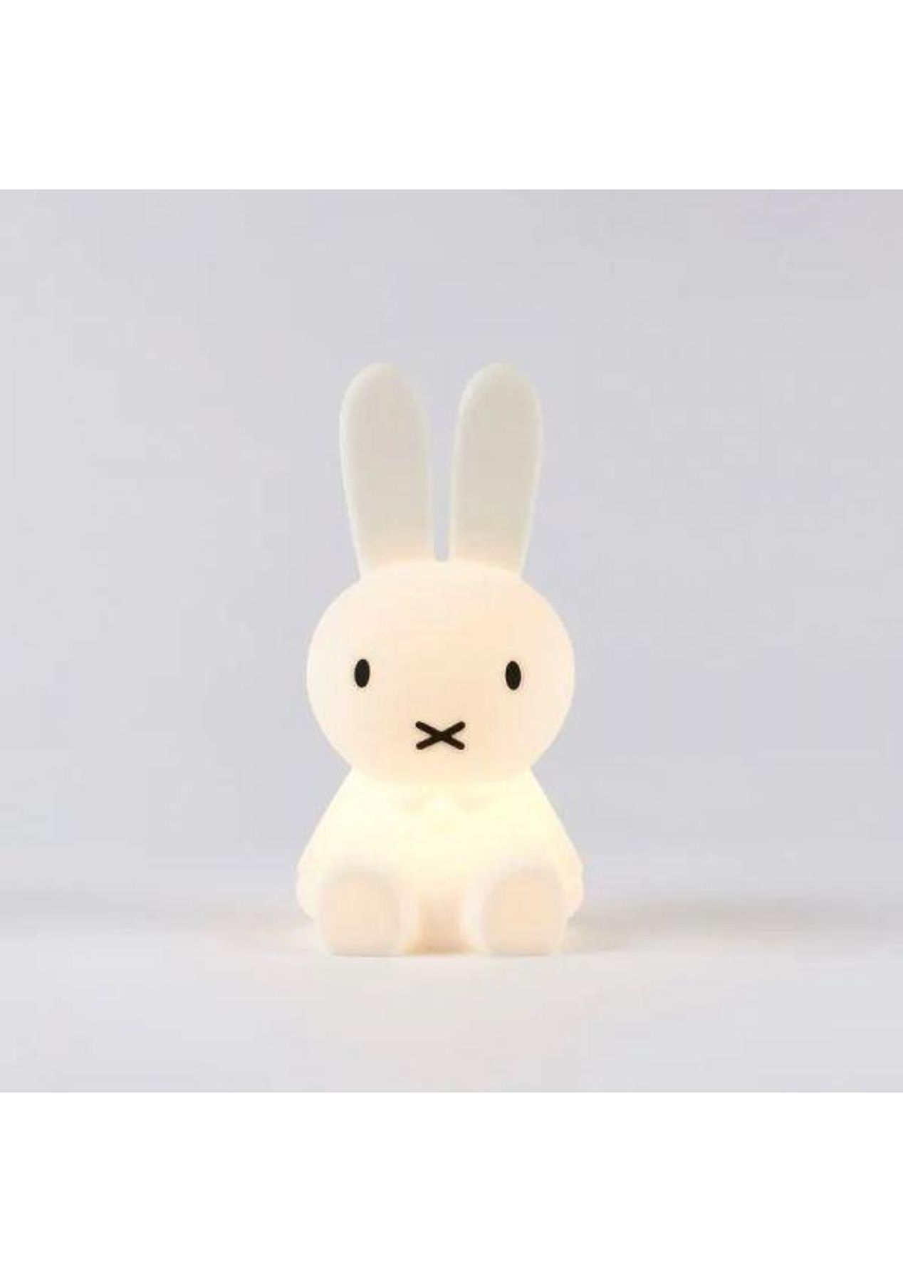 Description Sweet and serene, the Miffy Bundle of Light works as a nightlight. This charming lamp exudes a soft, warm glow for 15 minutes while little ones are falling asleep. Super soft to touch and so cute. Colour: White Material: Silicone Dimensions: 15cm tall Battery powered Lamp type: LED