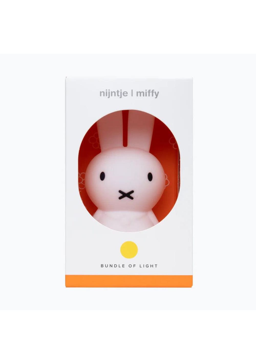 Description Sweet and serene, the Miffy Bundle of Light works as a nightlight. This charming lamp exudes a soft, warm glow for 15 minutes while little ones are falling asleep. Super soft to touch and so cute. Colour: White Material: Silicone Dimensions: 15cm tall Battery powered Lamp type: LED