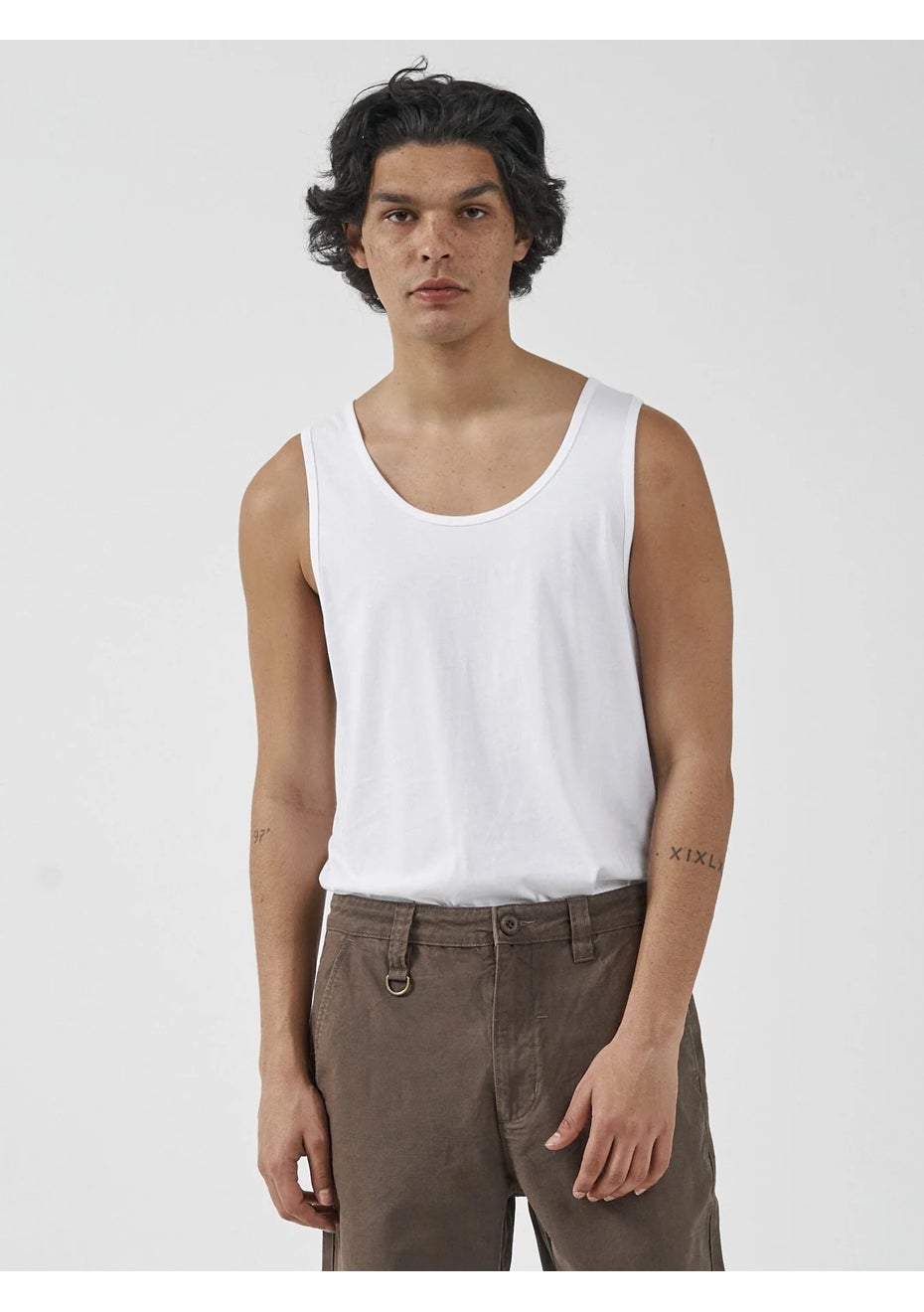 You never really know how much you are gonna use a singlet until you have one in your possession. Wear it under a tee or under a shirt undone, or just as it comes. Very Baz Lurman Romeo and Juliet steeze - probably as good as it gets. - Regular fit true to size - Our model wears a size M/32 and is 188cm/6'2" tall 100% Cotton Knit 160gsm Jersey