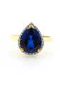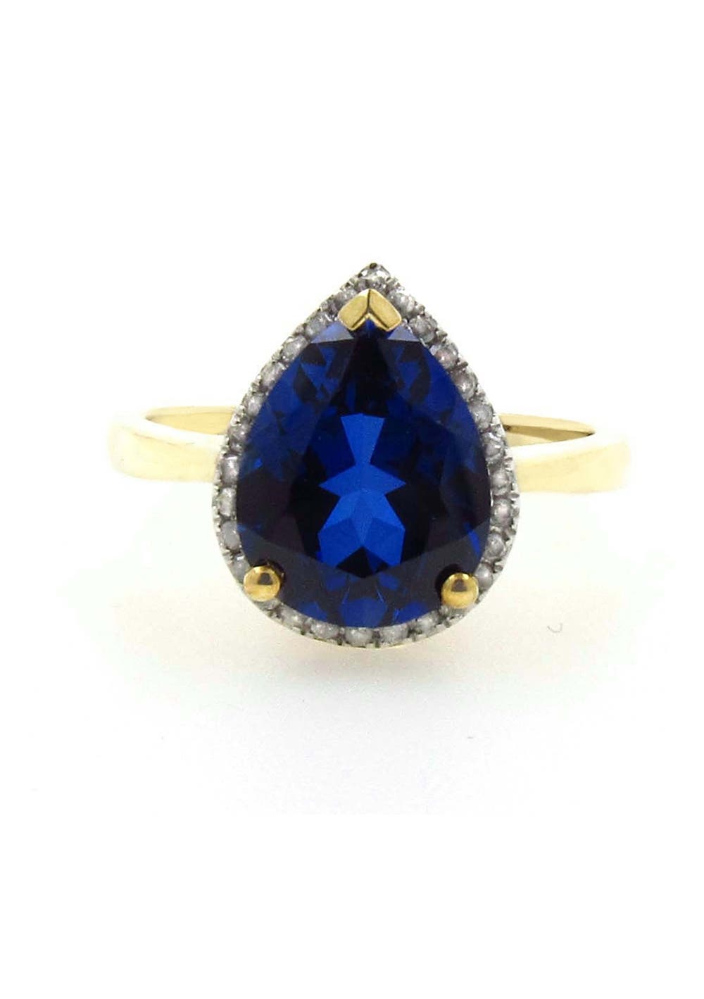 9ct Yellow Gold Synthetic Sapphire & Diamond Pear Shaped Ring