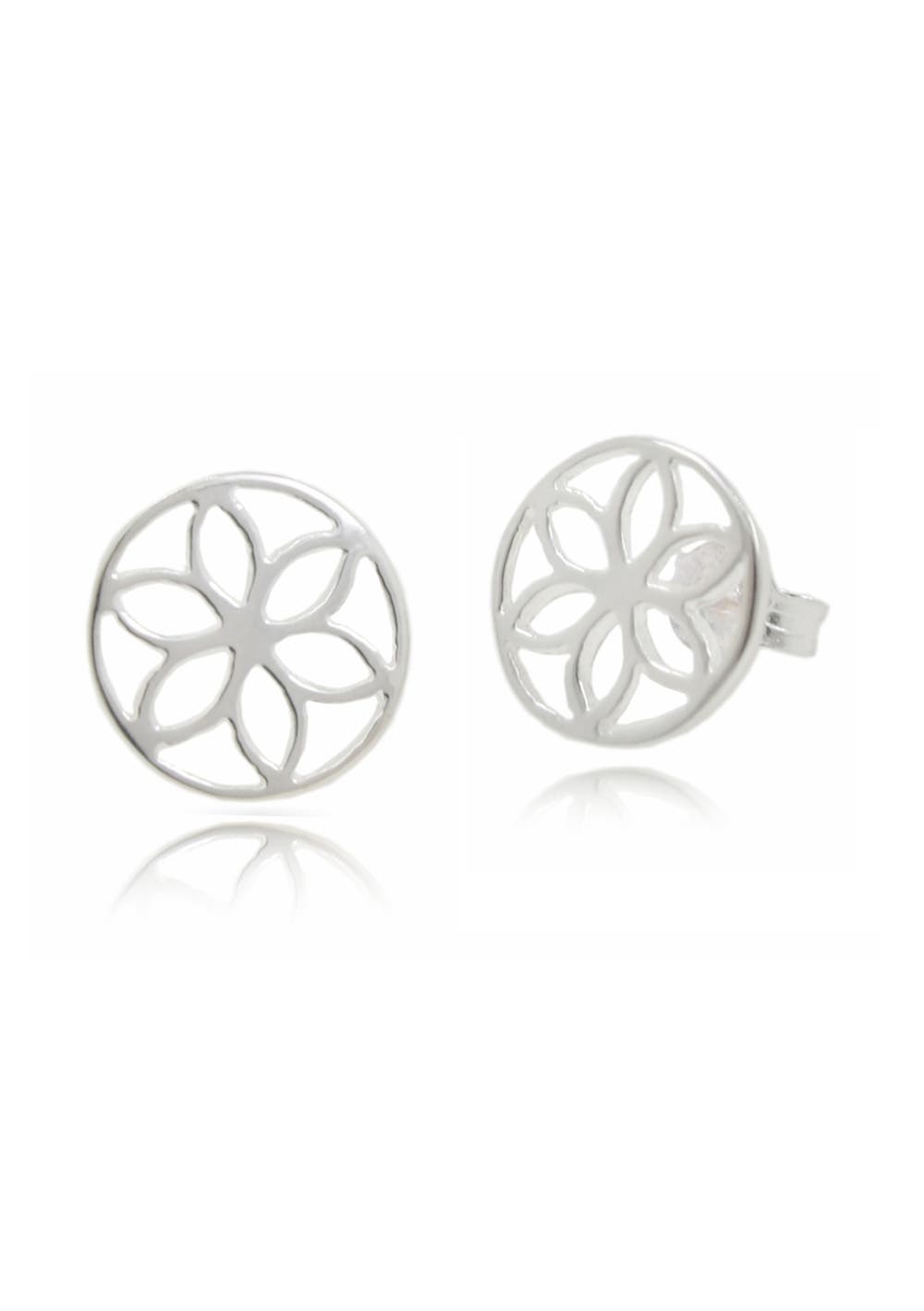 Sterling Silver Pierced Out Flower Disc Stud Earrings