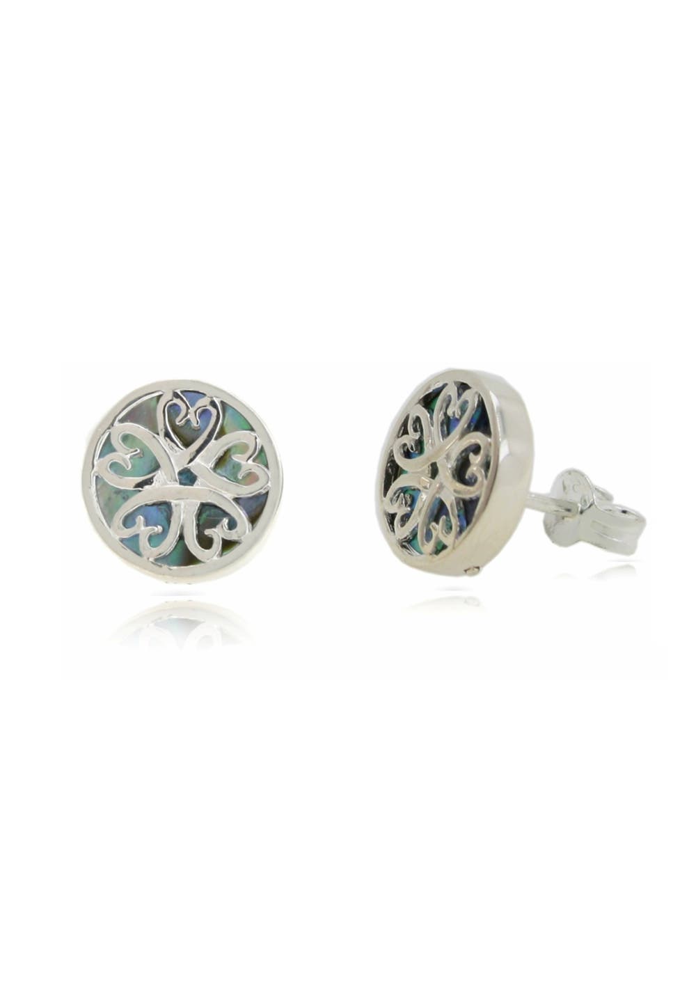 These classic paua studs have an intricate flower overlay making them a true statement piece. Details are as follows: Genuine sterling silver Paua shell inlay with silver flower hearts Measures 10 mm Leaves our warehouse within 2 working days