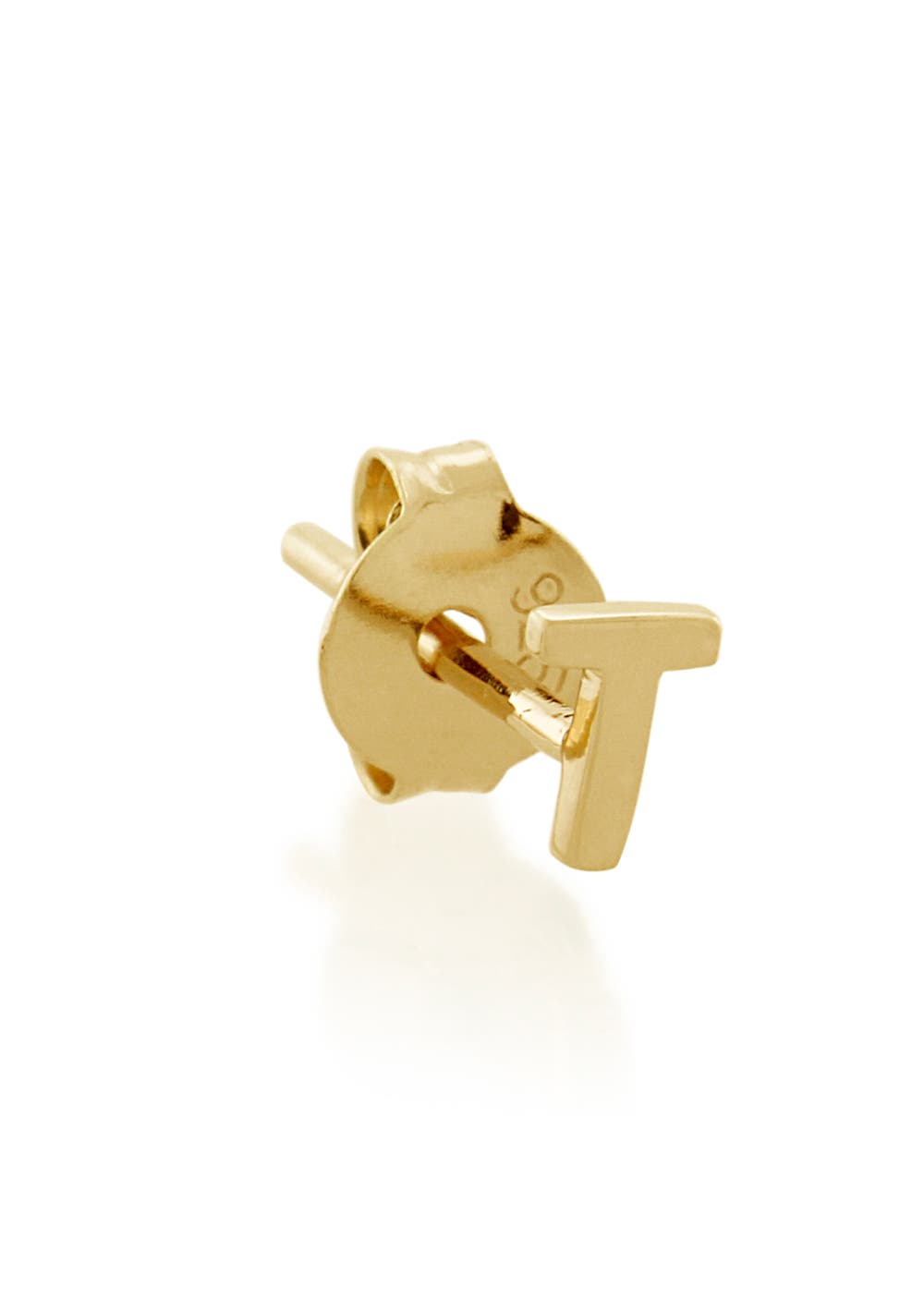 Sterling Silver Gold Plated Single Initial Stud Earring