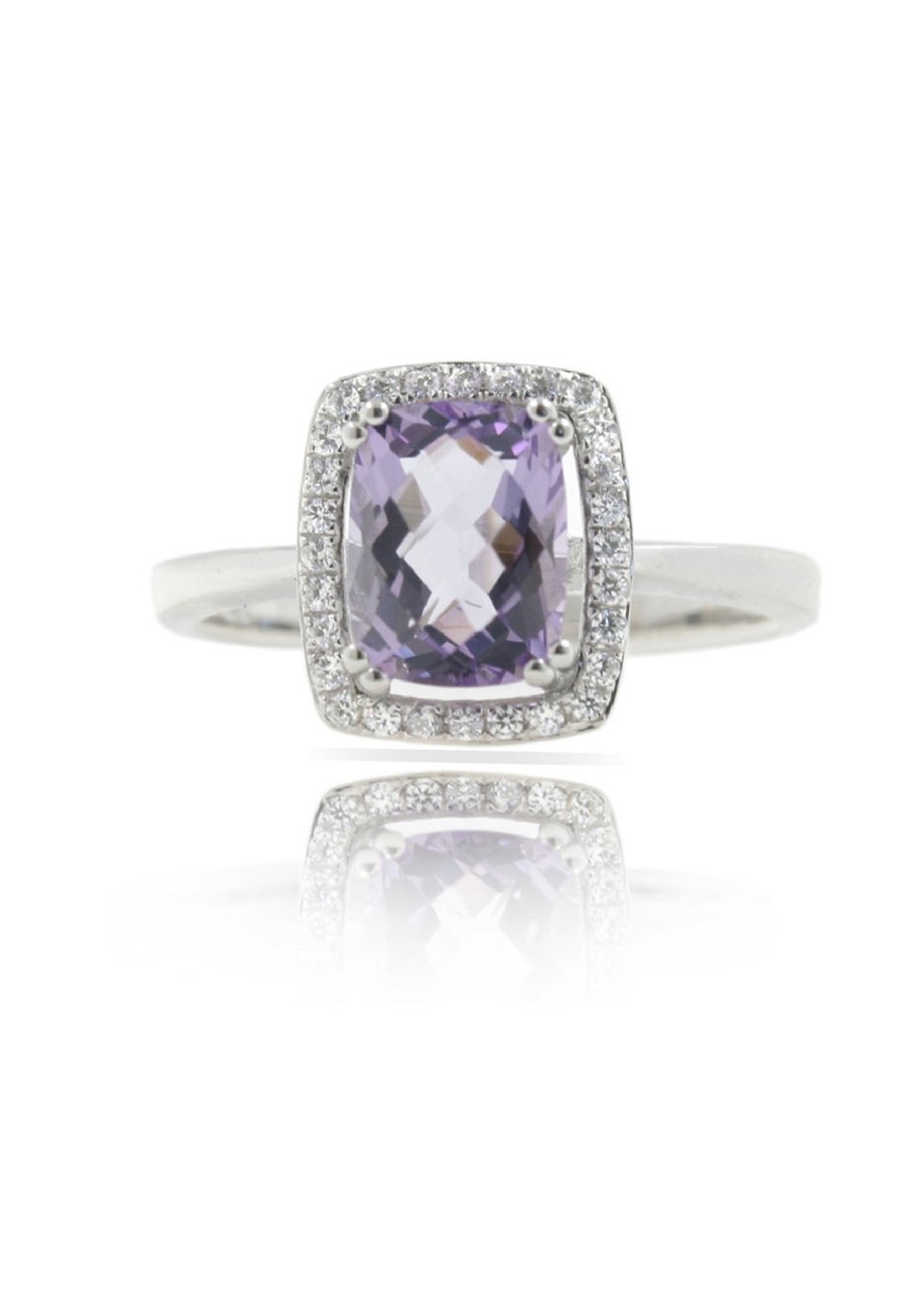9ct White Gold Ring with Cubic Zirconia & Amethyst Crystal