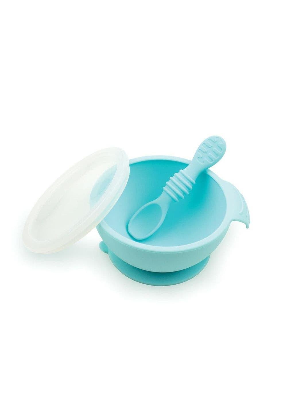 Description Our Silicone First Feeding Set helps you to introduce solid foods and transition your baby to self-feeding. The suction base keeps the bowl from sliding or flipping over. Great for use on highchair trays or tables. The easy to grip double-end silicone spoon grows with baby – one end is for dipping into purees and the other for scooping solid foods. The bowl is designed with a curved handle so mom or dad can hold and help with feeding. Made with 100% food-safe silicone, the spoon is soft and safe for teething babies. The set includes a clear silicone lid with a secure fit. Ideal for saving leftovers – the clear lid allows you to easily see stored food. All pieces are BPA-free, PVC-free, phthalate-free and lead-free Microwaveable, freezer-safe and dishwasher-safe (top rack) Bowl only is oven safe, up to 400°F/204°C Bowl measures 4.25” in diameter, holds approximately 10 oz Spoon measures 4.75” in length; handle measures 1” around For ages 4 months and up Highlights Strong Suction Base We know there will be a lot of food hitting the floor during mealtime. Thanks to our strong suction bases, we're helping to stop those dishes from going airborne! Our suction bases also help keep the dish in place while baby is learning how to use utensils and grab onto those slippery first foods. Once your little one is beyond the dish-throwing stage, you may wonder why a suction base is so important. Well, when your little one is putting a lot of power behind scooping and piercing their foods, the dish tends to slide around the table, causing more food-chasing than food-eating. Thankfully, the suction base helps stabilize those dishes so your little one can focus on the good stuff — getting those yummy bites into their tummy! Clear Lid for Storage Our Bumkins First Feeding Sets includes a clear silicone lid with a secure fit. Ideal for saving leftovers – the clear lid allows you to easily see stored food. Now you can easily store leftovers or prep ahead. Plus, our lid has a writeable surface. Using any dry erase, wet erase, or washable marker, you can remember when it was made or who it belongs to. Double-Ended Dipping Spoon Our Bumkins First Feeding Sets include a Silicone Dipping Spoon, which are double-ended to grow with baby—one side for dipping into purees, the other for scooping. The dipping end of the spoon is flat, with grooves on both sides to easily grasp those purees and mashed first foods. Thanks to those grooves, both sides of the dipping end allow for a successful dip; there's no wrong way to dip! Once baby has mastered the motion of dipping and landing in the bowl, the opposite end of the spoon becomes more interesting. Sized for baby's small mouth, this end of the spoon allows for perfect-sized first bites. Handle for Easy Holding Our classic Bumkins bowls are designed with a curved handle for you to hold and help with feeding. Hold it however you see fit, but know you have options to make mealtime a bit easier. Perfectly Sized for Purees Our classic Bumkins bowls measures 4.25” in diameter and holds approximately 10 oz. This allows you to start baby with small puree portions, but baby won’t age-out of the bowl — the bowl continues to grow with baby as they dig into toddler size portions! Platinum Cured Silicone Silicone is extremely durable, easy to care for, and safe to use. During creation, silicone can be "cured" with two types of curing agents. We use the best one - platinum. When cured with platinum, there are no by-products created, and the silicone's already fabulous qualities are amplified. Dishwasher, Microwave, and Oven Safe Silicone is extremely durable, which means it's safe in nearly all appliances. Heat safe up to 400°F/204°C so you can cook or reheat your little one's favorite foods in a snap! If you've warmed it up too much, you can go straight from microwave to freeze for a quick cool down. Silicone is also dishwasher safe. Wash your Bumkins dishware however you see fit, but rest assured, the days of handwashing dishes are in the past with silicone. Care Instruction Dishwasher safe (top rack only) or hand wash with dish soap and warm water and let air dry. Some scented washing products may leave a residue odor or taste in the silicone grip dish so we recommend using products with little or no scent. Microwave and freezer safeBowl only is oven safe, up to 350°F
