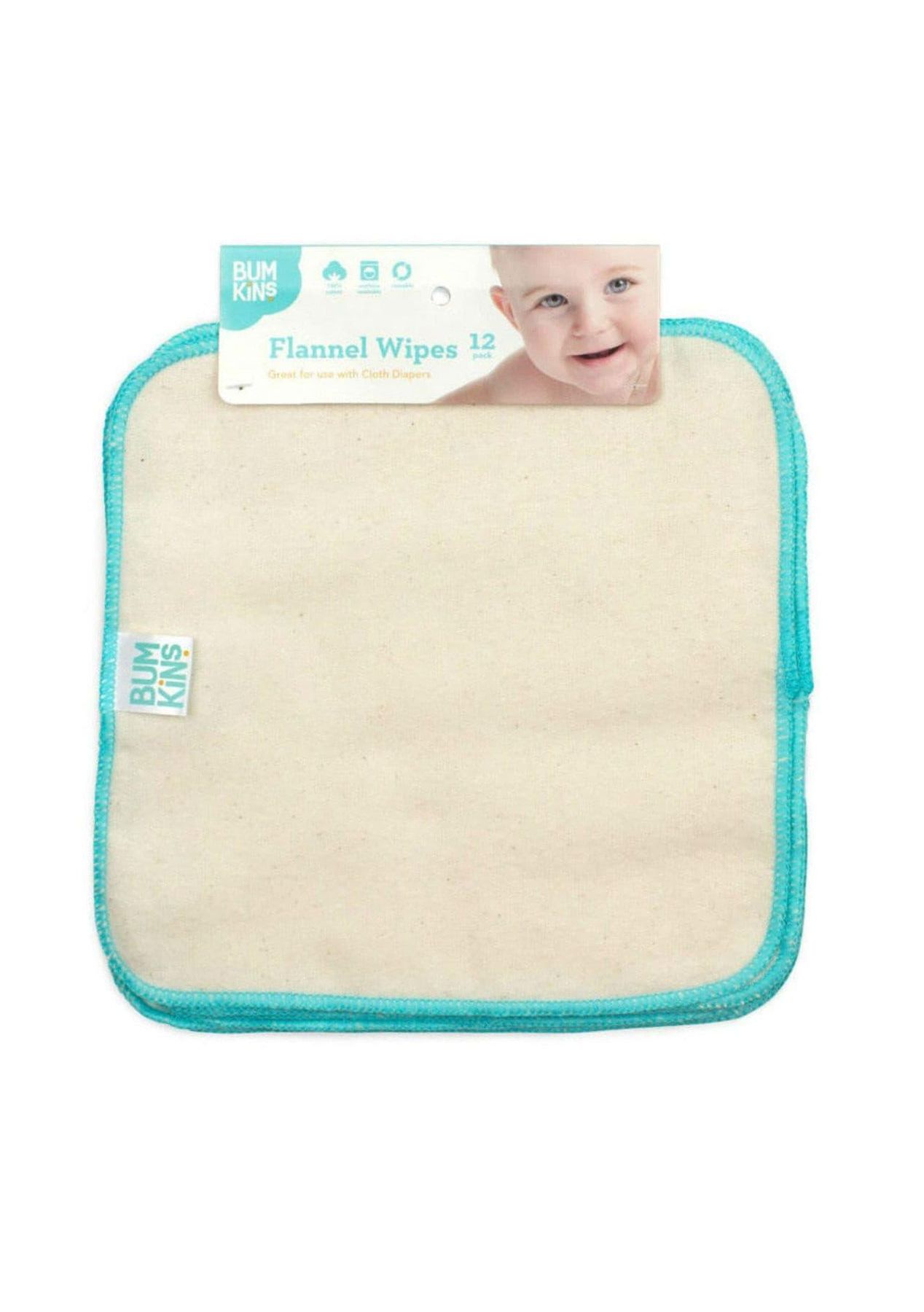 Bumkins Reusable Baby Wipes - Natural/Aqua Trim - 12 Pack