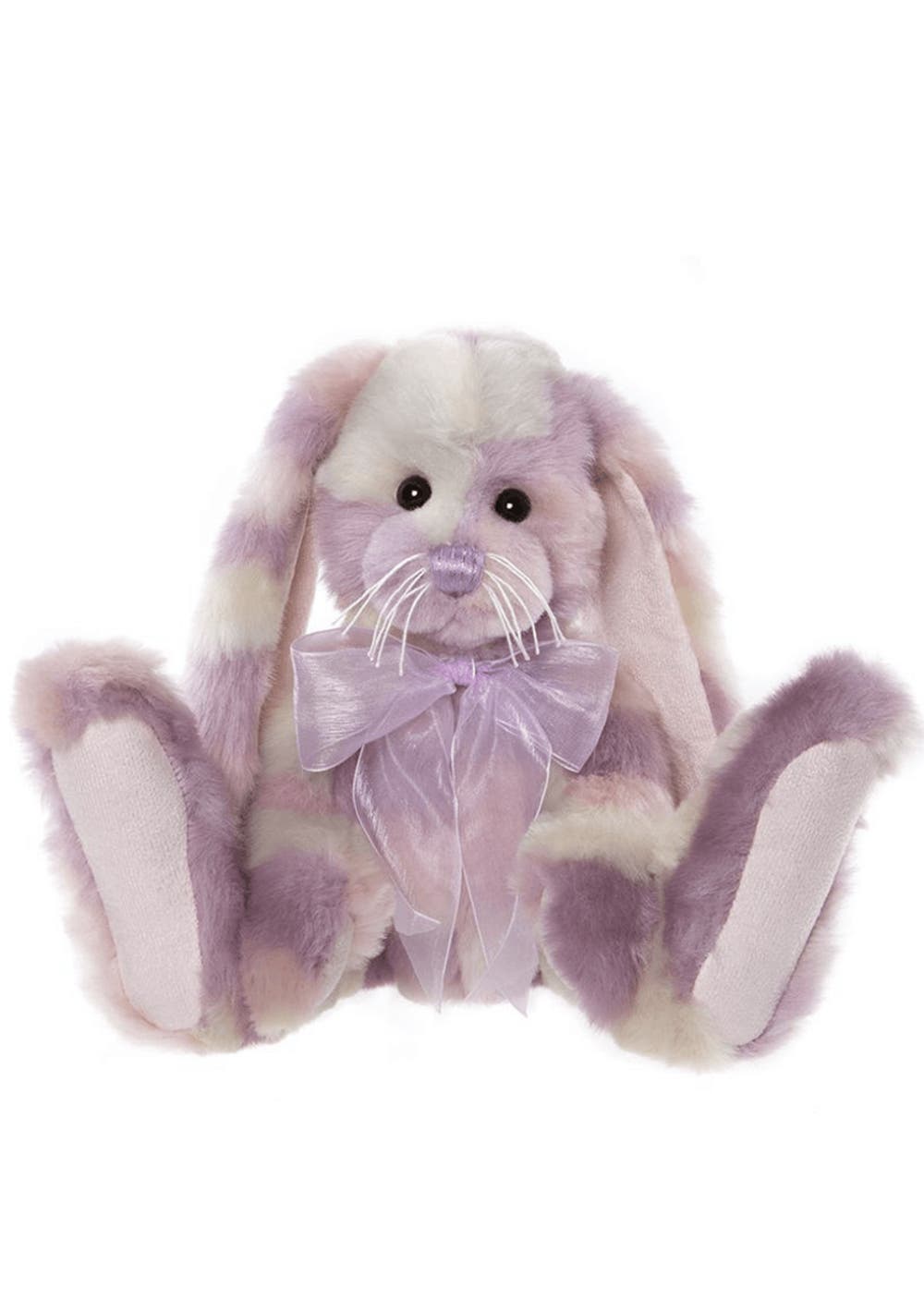 Description Charlie Bears Pink Tulip, our super-soft, fully-jointed rabbit from The Labyrinth Collection 2024 would love to join your hug! Pink Tulip features beautiful pastel pink, lilac and white plush fur in a patch design and is finished with a large organza bow around her neck. Specification Primary Colour: Brown Material: Plush Material Composition: 100% Plush Filling: Polyester fibre and PP pellets Eyes: Plastic Eyes Safety & Care Care Instructions: Can be surface cleaned with care. Safety Recommendations: Suitable for every collector aged 3 years +