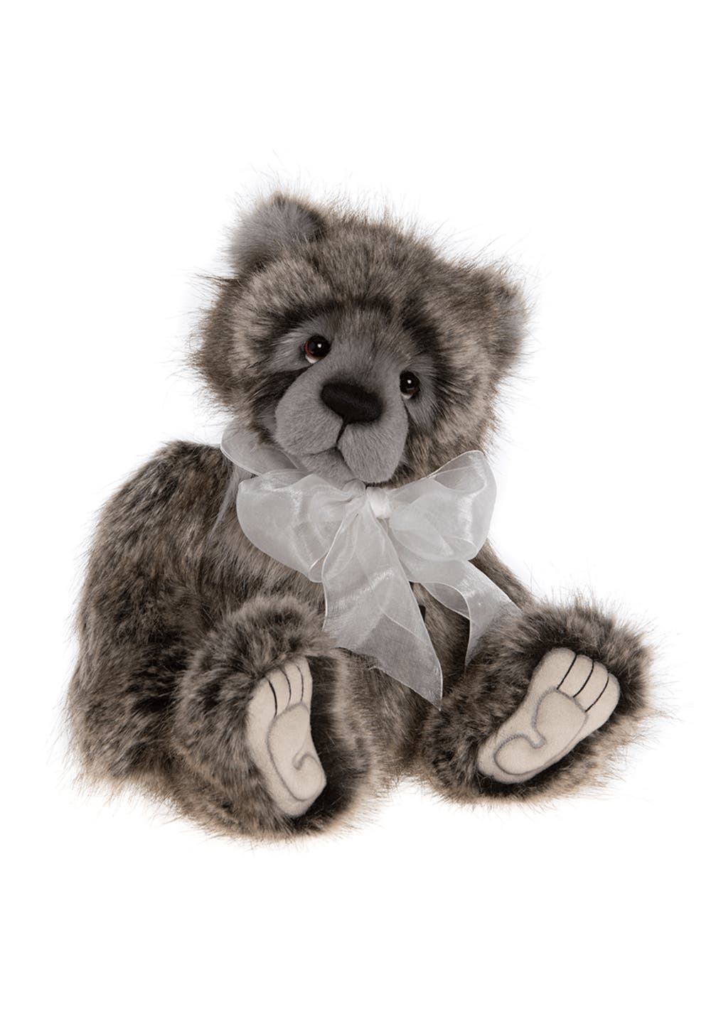 Description Don't let his name fool you, Charlie Bears Grumbles is a loveable bear and a big softy! He boasts dark grey plush fur tipped bear-utifully with a lighter tone and wears a silvery white organza bow. With his heart-melting gaze and sculpted paw pads, how can you resist a cuddle? Specification Primary Colour: Grey Material: Plush Material Composition: 100% Plush Filling: Polyester fibre and PP pellets Eyes: Plastic Eyes Safety & Care Care Instructions: Can be surface cleaned with care. Safety Recommendations: Suitable for every collector aged 3 years +
