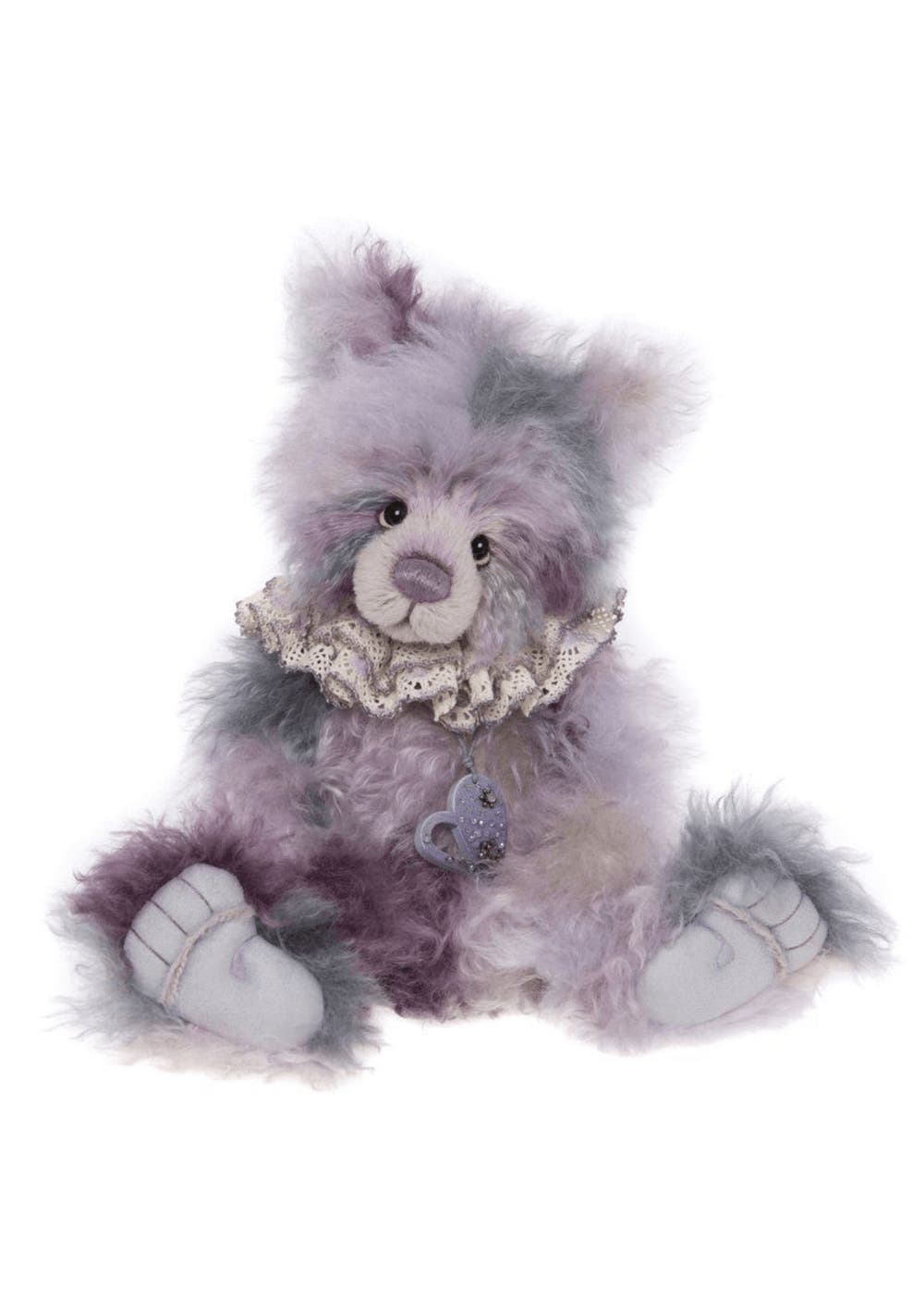 Description Charlie Bears Rococo, part of our 2023 Isabelle Collection, takes her name from the architectural period in time and she is a truly stunning panda. Crafted from the finest alpaca and mohair in delicate shades of pink, purple and grey, she would stand out in any hug. Rococo wears a pretty pendant and a lace collar. Specification Primary Colour: Purple Material: Alpaca & Mohair Material Composition: 3% Alpaca, 97% Mohair Filling: Polyester fibres, plastic pellets, metal beads, wooden stiffener and plastic-coated wire stiffener Eyes: Plastic Eyes Limited edition of 300 pieces worldwide. Safety & Care Care Instructions: Can be surface cleaned with care. Safety Recommendations: Suitable for every collector aged 14 years +