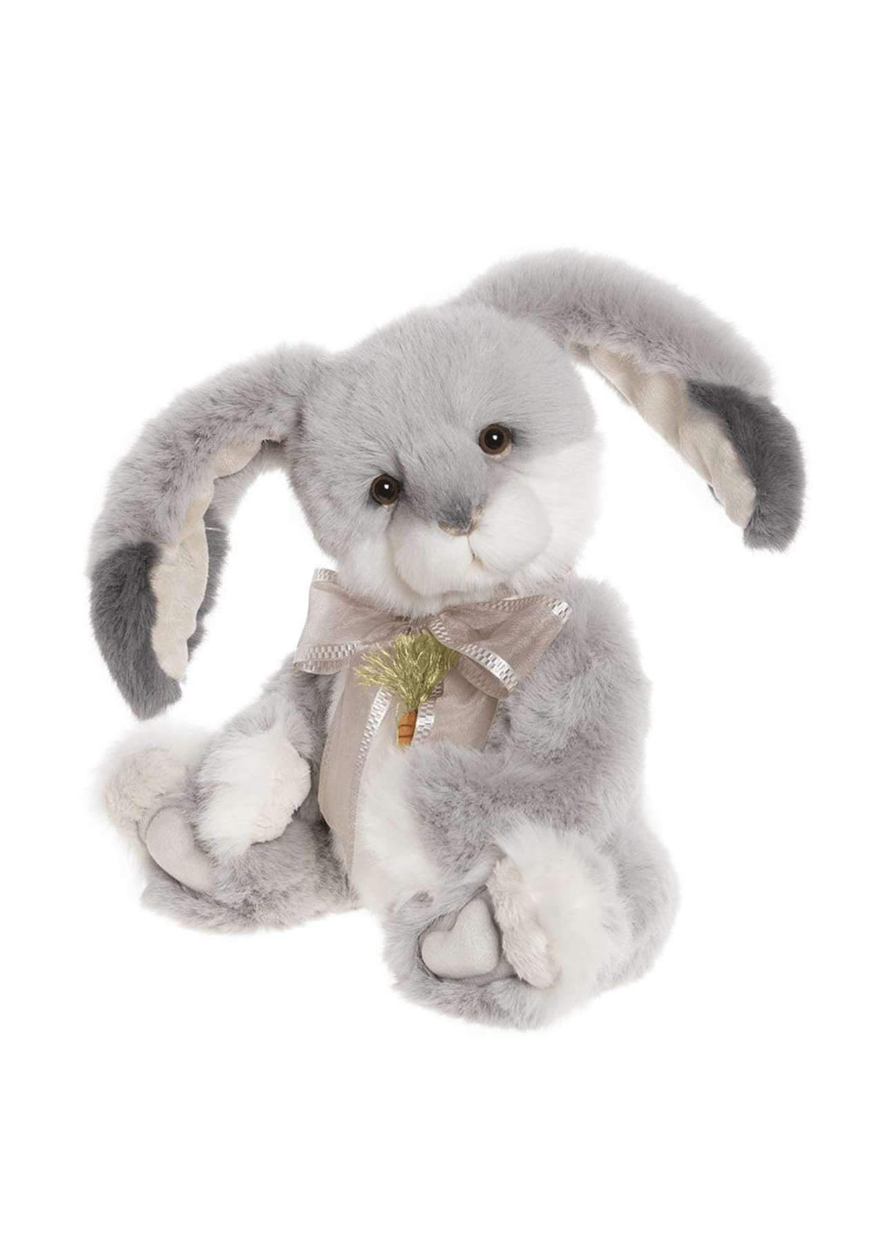 Description Charlie Bears Cabbage Rose is from our 2020 Plush Collection. She is a bear-utiful plush bunny who has pawfectly lopped ears and comes with her beary own carrot on her necklace and so she can snack at all times. She is fully jointed and has wonderfully soft plush for simply paw-some cuddles. Specification Primary Colour: Grey Material: Plush Material Composition: 100% Plush Filling: Polyester fibre and PP pellets Eyes: Plastic Eyes Safety & Care Care Instructions: Can be surface cleaned with care. Safety Recommendations: Suitable for every collector aged 3 years +