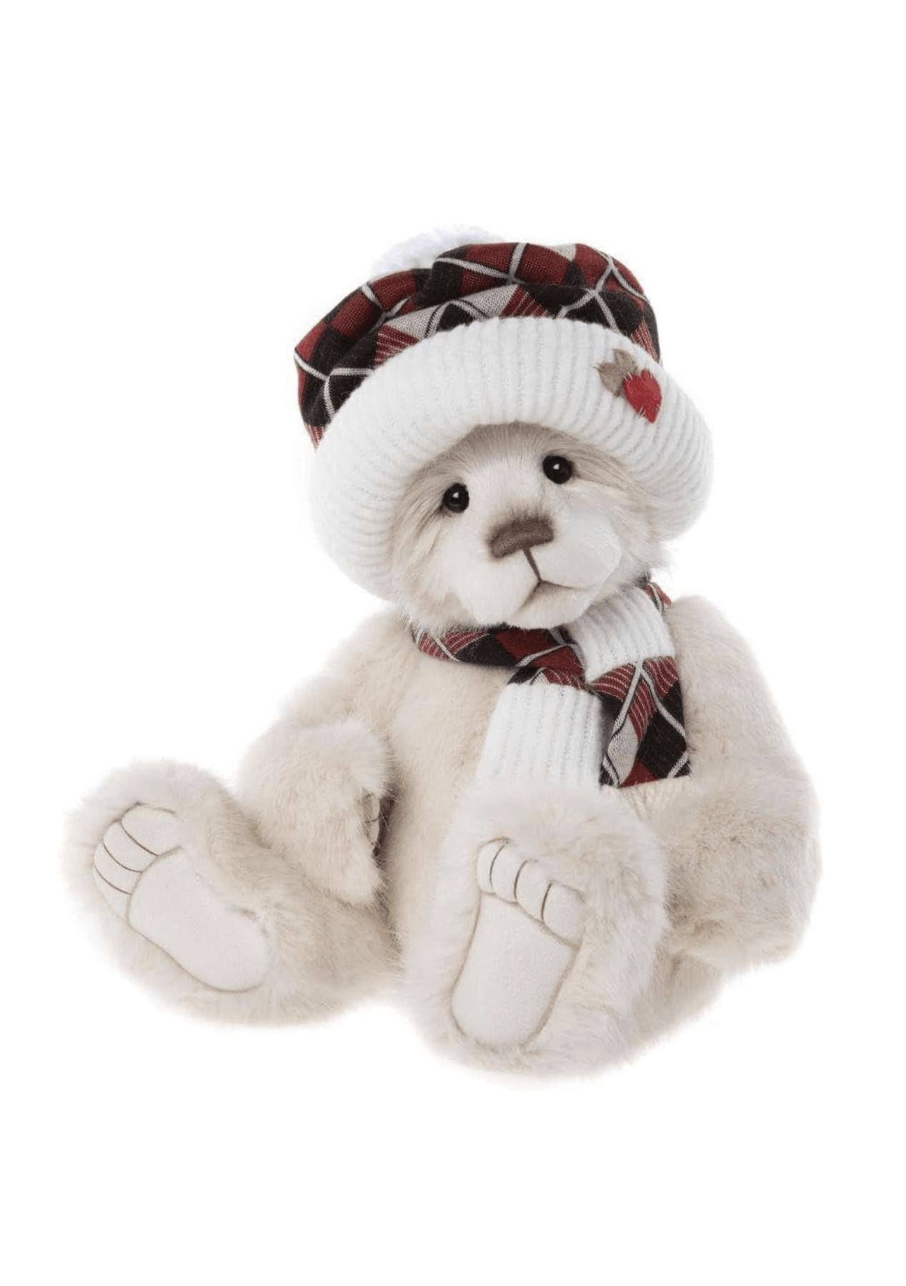 Description Charlie Bears Cozy is another gorgeous bear from the Charlie Bear 2023 Plush Collection, and is one of the "Hatty Series". He has thick dense fur in winter white, and he is a weighty sold bear. His beautiful face has those dark take me home eyes, and a handstitched nose in brown. His stitched and shaded paw pads are off white. He is dressed for winter with a beautiful knitted scarf, and a fabulous knitted hat. Specification Primary Colour: White Material: Plush Material Composition: 100% Plush Filling: Polyester fibre and PP pellets Eyes: Plastic Eyes Safety & Care Care Instructions: Can be surface cleaned with care. Safety Recommendations: Suitable for every collector aged 3 years +