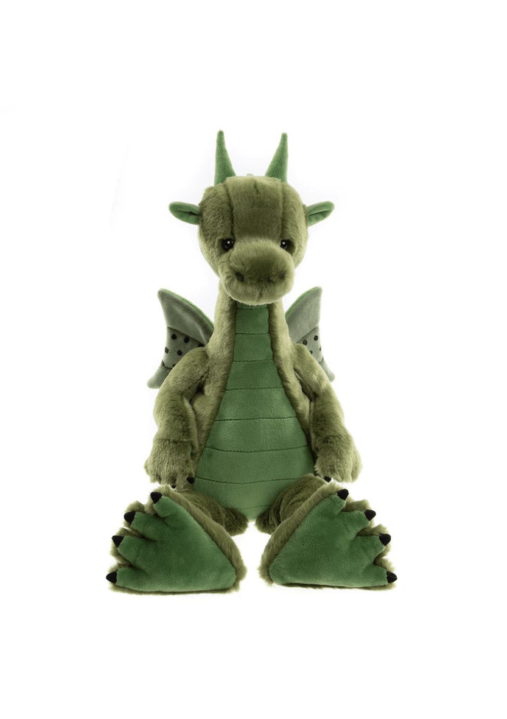 Description Meet Deck, a non-jointed and machine washable dragon from the 2025 Bearhouse collection by Charlie Bears. This huggable companion is crafted from soft green plush and has a delightfully plump body that's perfect for cuddles. The dragon's distinctive design includes adorable horns, detailed spinal ridges along its back and beautiful wings with fluffy accents that add to its magical appeal. Be sure to look out for Deck’s friends – Hearts, Clubs, Spades and Diamonds! Specification Primary Colour: Green Material: Plush Material Composition: 100% Plush Filling: Polyester fibre and PP pellets Eyes: Plastic Eyes Safety & Care Care Instructions: Fully machine washable. Safety Recommendations: Suitable for every collector aged 18 Months+