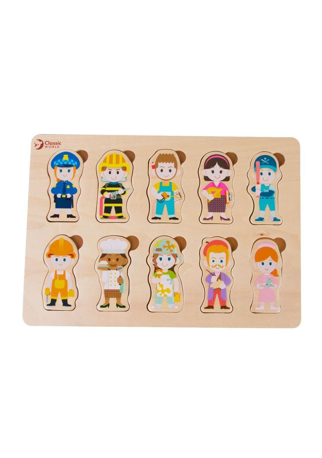 Description Let your little one have fun with our people of career puzzle. See the different outfit and uniforms for the different careers in their bright colours and encourage your child to match the correct one. Specifications Age: 18M+Material: Plywood