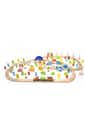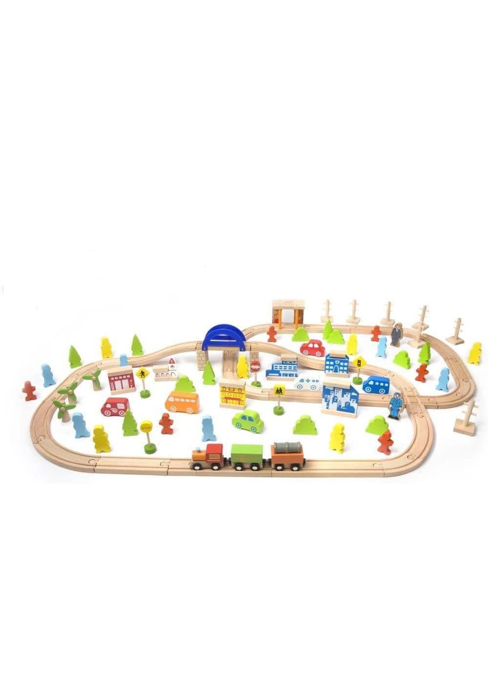 Description This 110-piece train set includes a variety of accessories, a rotating crane and a tower crane. Children will have fun moving the cargo from the port, through the busy towns and into the city. This set helps children to develop their coordination and problem-solving skills as they move their train through the imaginary world of commerce. Features Dims: 46 x 27 x 25cmAge: 3+ YearsMaterials: Beechwood, Tea Wood and MDF
