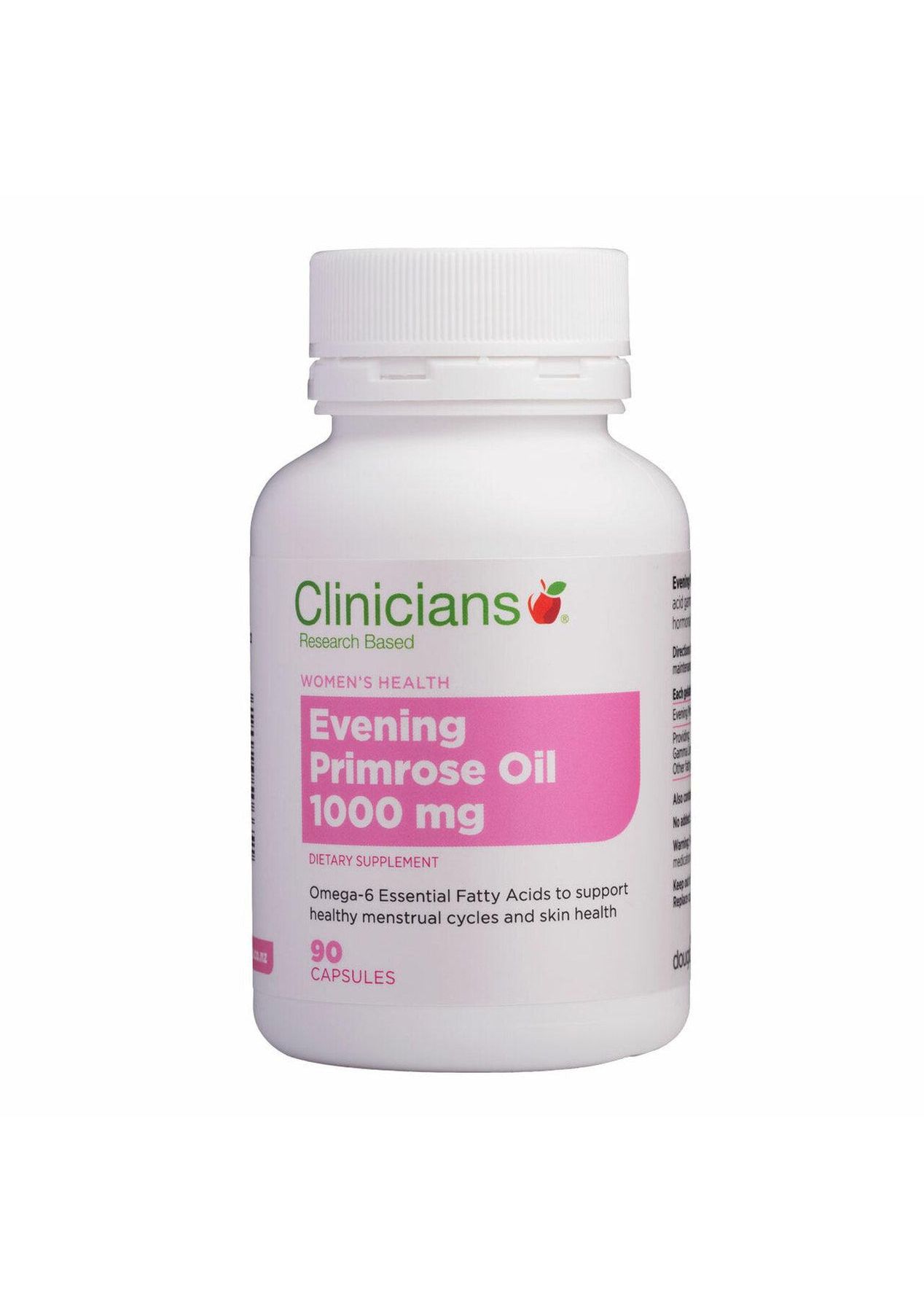 Description Clinicians Evening Primrose Oil 1000mg contains the omega-6 essential fatty acid (EFA), gamma linolenic acid (GLA). EFA deficiency can affect all organs in the body and is especially important for the health of the skin, the bronchial and circulatory system, hormonal balance, immune system balance and joint health. Ingredients Each gelatin capsule contains: Evening Primrose Oil 1000mg Providing: Gamma Linolenic acid (GLA) 100mgOther fatty acids (including linolenic acid and oleic acid) 900mg Also contains: d-alpha tocopheryl, soybean oilNo added: Gluten, dairy, yeast, sugar, artificial colours, sweeteners, flavours or preservatives. Suggested Use Adults: 1 to 2 capsules, 2 to 3 times daily. As a maintenance dose, take 1 capsule once or twice daily. Additional Product Information WarningsÔºö Epilepsy - A study has shown that supplemental GLA may increase the tendency of epileptic patients to have seizures. Affected individuals may want to consider using omega - 3 (fish oil) as a source of essential fatty acids. Individuals on blood thinning medications such as warfarin should consult a health professional before taking evening primrose oil, especially in high doses as it may affect blood clotting times. Pregnant or breastfeeding women should consult a health professional before taking this product