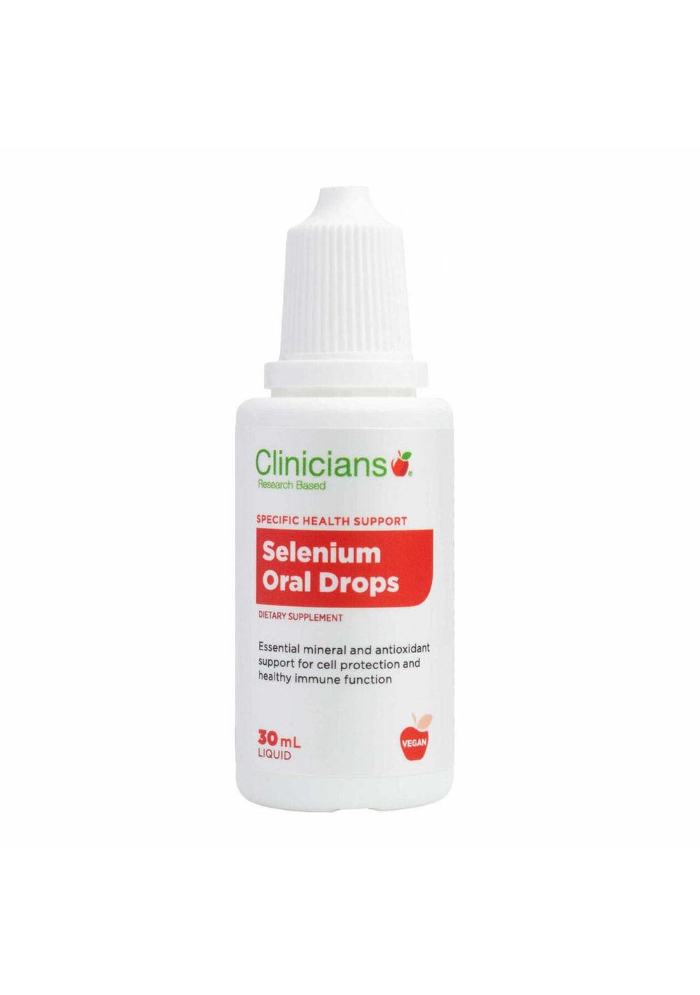 Description Clinicians Selenium Oral Drops are a well absorbed liquid form of Selenium, offering mineral and antioxidant support specifically for the needs of New Zealanders as NZ soils are low in selenium content. Selenium is an essential antioxidant mineral that provides support for cell production and healthy immune function. Clinicians Selenium Oral Drops contain sodium selenate, a highly bioavailable and absorbable form of selenium. It is an effective antioxidant, especially when combined with vitamin E. Ingredients Active ingredients in each drop: Selenium (from sodium selenate) 50mcg Also contains: Purifed water, citric acid, sodium citrate, potassium sorbate.No Added: gluten, dairy, yeast, sugar, artificial colours, sweeteners or flavours. Suggested Use Adults (12 years and older): Take 3 drops daily. Children (under 12 years): Recommended dose is 3mcg per kg body weight per day. Do not exceed 150mcg per day. Additional Product Information WarningsÔºö Selenium toxicity has only been reported for doses exceeding 1000mcg per day over extended periods of time. Do not exceed the recommended daily dose (150mcg) unless under the supervision of a health professional. Pregnancy & Breastfeeding: Clinicians Selenium Oral Drops are regarded as suitable to take during these times under health professional supervision to ensure appropriate dosing.