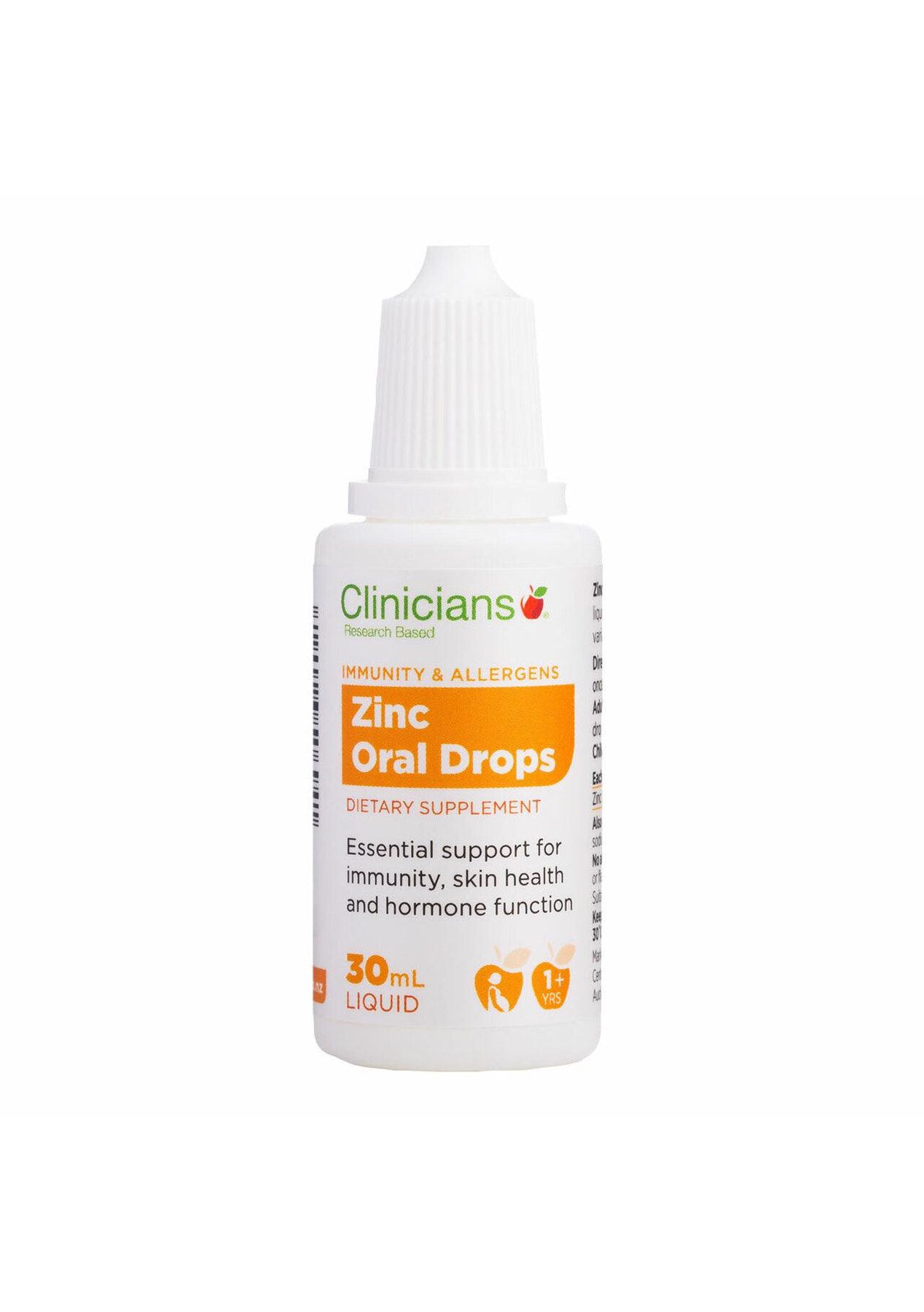 Description Clinicians Zinc Oral Drops is a high potency, well tolerated liquid form of Zinc for cost-effective flexible dosing for all age groups. Zinc is an important trace mineral essential for healthy hormone production, immune function, skin health and growth, and repair. Ingredients Active Ingredient in each drop: Zinc (sulphate) 1mg Also contains: purified water, citric acid, sodium citrate and potassium sorbate.No Added: gluten, dairy, yeast, sugar, artificial colours, sweeteners or flavours. Suggested Use Adults and Children over 9 years: Up to 15 drops per dayChildren 4-8 years: Up to 4 drops per dayChildren 1-3 years: Up to 3 drops per day Take in fluid once daily. Highest daily dose reflects safe tolerable upper level for each age or the maximum permissible over-the-counter dose in New Zealand (15mg) Additional Product Information WarningsÔºö Zinc competes with copper for absorption. Other minerals (most notably calcium and iron) can adversely affect zinc absorption if supplemented at high doses. If you are taking high doses of other individual minerals defer zinc supplementation to a different time of day. Pregnancy & Breastfeeding: Clinicians Zinc Oral Drops is well tolerated and considered suitable to use during these times, use under health professional supervision to ensure appropriate dosing.