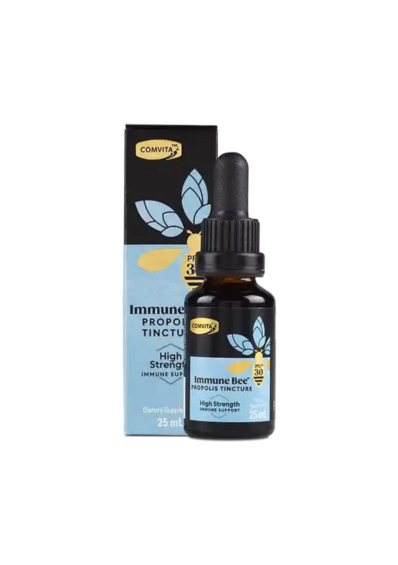 Description Support your immune system with pure, natural bee propolis. Comvita Immune Bee™ Propolis PFL30 is an everyday High Strength formulation designed for topical application directly to the skin or for antibacterial and antiseptic benefits. Honeybees are clever. They make bee propolis by collecting resin from trees and combine it with beeswax and enzymes to seal and protect the hive.Bee Propolis originates from a plant’s immune system and contains over 300 natural, bioactive compounds, flavonoids and phenolics (potent antioxidants) that work at the cellular level to fight free radicals and support the body’s immune system, naturally.Immune Bee™ propolis PFL30 High Strength Tincture has been specially formulated to be a high strength dose of flavonoids that can be applied topically or ingested for immune system support, oral health or skin support. Ingredient Each 1.25mL contains ethanol, Pure Propolis tincture, water. Direction SKIN SUPPORT: (ADULTS): For easy application, drop the tincture directly onto the affected area or onto a cotton ball or cotton tipped applicator and apply. Allow to dry, and cover if necessary.IMMUNE SUPPORT: Mix 1.25ml in water and drink once per day.