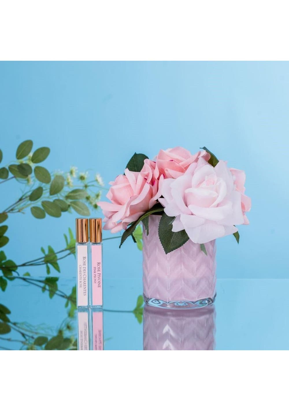 Description This beautiful life-like rose arrangement has been set in a gel infused with fine fragrance with Herringbone Glass. Each flower is skilfully hand crafted & uses a special, natural coating to give every petal a natural touch & appearance. Enclosed with your natural touch rose is a bottle of oriental rose-scented perfume, which you can spray directly onto the rose to refresh & enhance the scent. Beautifully packaged in a ribboned box. Fragrance Notes: Pink Peony: This luxurious scent is mixed with jasmine, top notes of rose and gillyflower to create a rounded fragrance that almost recreates the delights of a fresh peony bouquet Charente Rose / Rose Des Charentes: A natural rose with top notes of rose petal, middle notes of rose leaf and base notes of white musk. Specifications ‚Äê Made in the France ‚Äê Bottom Diameter - 10cm ‚Äê Top Diameter - 20cm ‚Äê Height - 20cm ‚Äê Weight - 1.15kg