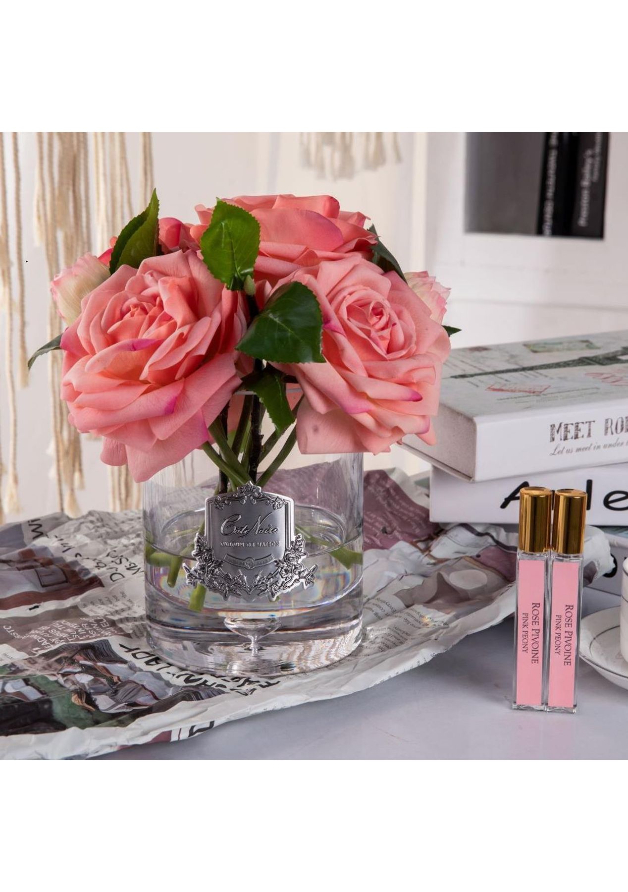Description Taking inspiration from provincial village life, we have created a range of full-bodied fragrances combining patisserie favourites with succulent fruits & florals. The fragrances in the Cote Noire range take inspiration from the idyllic Charente countryside with each scent striving to capture a portrait of traditional French life. The fragrances encompass patisserie favourites, fragrant teas, succulent fruits and enticing florals. The flowers have been skilfully hand crafted & uses a special, natural coating to give every petal a life like touch & appearance. The petals have been infused with fine fragrance. Luxury Tea Roses are beautifully packaged in a ribboned Cote Noire box. Fragrance Notes: Pink Peony: This luxurious scent is mixed with jasmine, top notes of rose and gilly flower to create a rounded fragrance that almost recreates the delights of a fresh peony bouquet Specifications ‚Äê Made in the France ‚Äê Bottom Diameter - 12.5cm ‚Äê Top Diameter - 25cm ‚Äê Height - 28cm ‚Äê Weight - 2.8kg