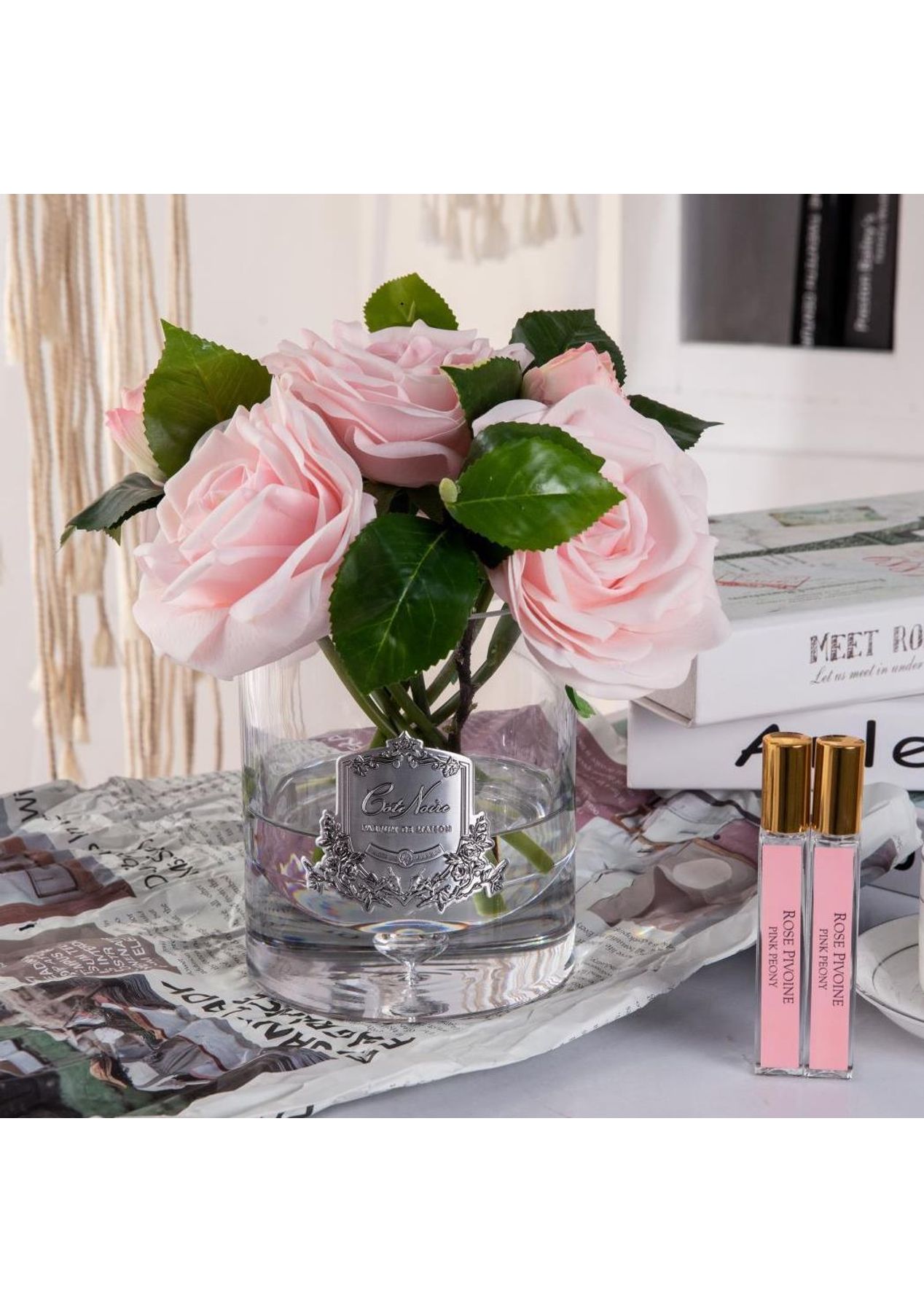 Description Taking inspiration from provincial village life, we have created a range of full-bodied fragrances combining patisserie favourites with succulent fruits & florals. The fragrances in the Cote Noire range take inspiration from the idyllic Charente countryside with each scent striving to capture a portrait of traditional French life. The fragrances encompass patisserie favourites, fragrant teas, succulent fruits and enticing florals. The flowers have been skilfully hand crafted & uses a special, natural coating to give every petal a life like touch & appearance. The petals have been infused with fine fragrance. Luxury Tea Roses are beautifully packaged in a ribboned Cote Noire box. Fragrance Notes: Pink Peony: This luxurious scent is mixed with jasmine, top notes of rose and gilly flower to create a rounded fragrance that almost recreates the delights of a fresh peony bouquet Specifications ‚Äê Made in the France ‚Äê Bottom Diameter - 12.5cm ‚Äê Top Diameter - 25cm ‚Äê Height - 28cm ‚Äê Weight - 2.8kg