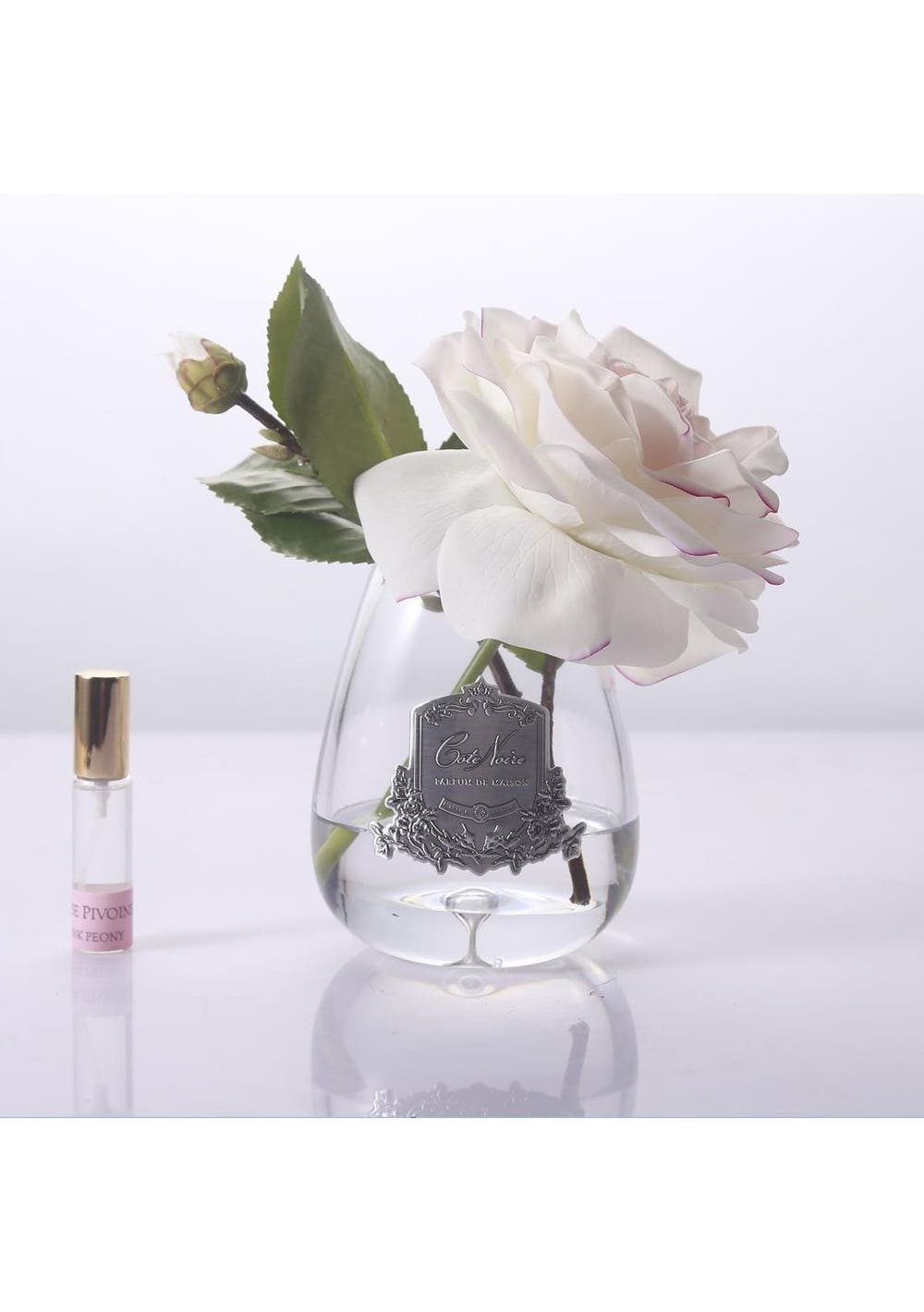 Description Taking inspiration from provincial village life, we have created a range of full-bodied fragrances combining patisserie favourites with succulent fruits & florals. The fragrances in the Cote Noire range take inspiration from the idyllic Charente countryside with each scent striving to capture a portrait of traditional French life. The fragrances encompass patisserie favourites, fragrant teas, succulent fruits and enticing florals. The flowers have been skilfully hand crafted & uses a special, natural coating to give every petal a life like touch & appearance. The petals have been infused with fine fragrance. Tea Rose arrangement has been set in a tear drop shaped glass in gel & beautifully packaged in a ribboned Cote Noire box. Fragrance Notes: Pink Peony: This luxurious scent is mixed with jasmine, top notes of rose and gilly flower to create a rounded fragrance that almost recreates the delights of a fresh peony bouquet Specifications ‚Äê Made in the France ‚Äê Bottom Diameter - 10cm ‚Äê Top Diameter - 20cm ‚Äê Height - 20cm ‚Äê Weight - 1.15kg