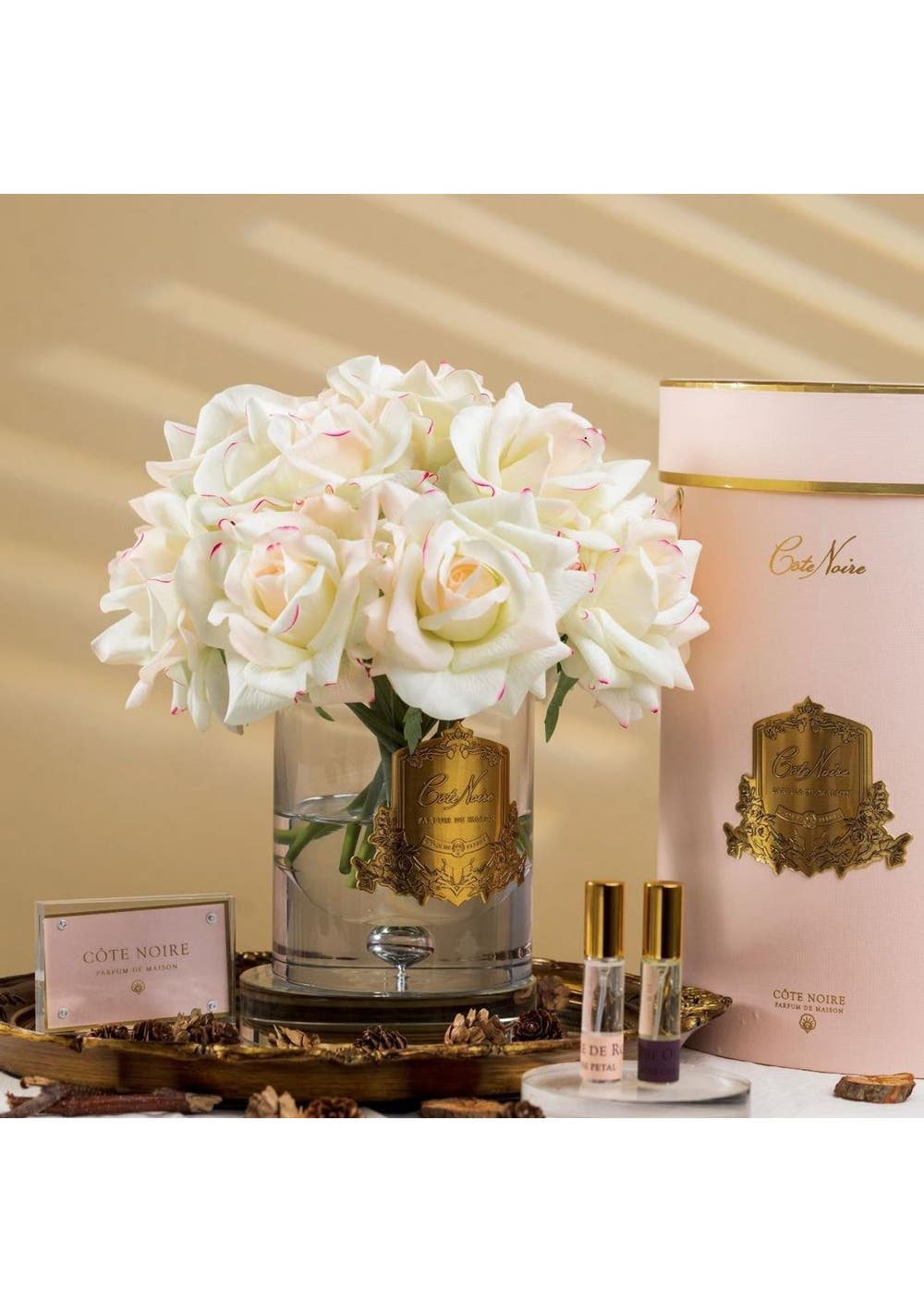 Description This beautiful life-like red rose arrangement has been set in gel infused with a fine fragrance.Each flower is skillfully hand crafted & uses a special, natural coating to give every petal a natural touch & appearance.Enclosed with your natural touch red rose is two bottle's scented perfume, which you can spray directly onto the roses to refresh & enhance the scent.Beautifully packaged in a hand made round box Fragrance Notes: Rose Petal: Young and fragrant rose petals warmed by the afternoon sun. Top notes of pink rose layered with notes of peony and iris. A fresh, innocent scent tamed with lingering notes of hibiscus. Rose Oud: Young and fragrant rose Oud warmed by the afternoon sun. A rich and innocent scent tamed with lingering notes of hibiscus Specifications ‚Äê Made in the France ‚Äê Bottom Diameter - 12.5cm ‚Äê Top Diameter - 26cm ‚Äê Height - 29cm ‚Äê Weight - 2.75kg