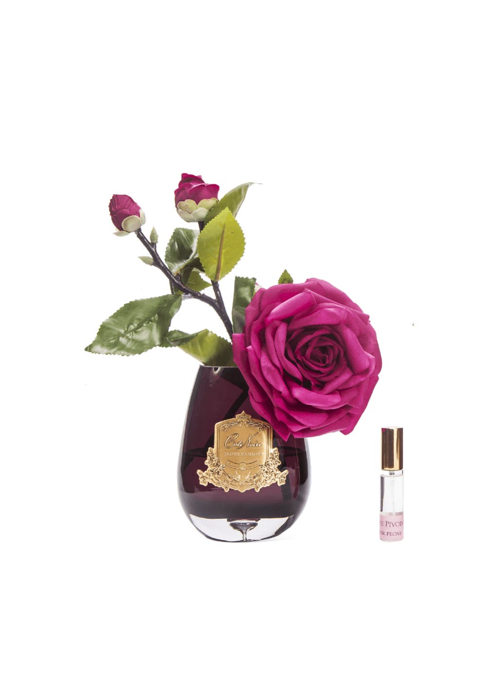 Description This beautiful life-like Tea Rose arrangement has been set in a tear drop shaped glass in gel infused with fine fragrance. Each flower is skilfully hand crafted & uses a special, natural coating to give every petal a natural touch & appearance. Enclosed with your natural touch Tea Rose is a bottle of Peonies scented perfume, which you can spray directly onto the Tea Rose to refresh & enhance the scent. Beautifully packaged in a ribboned box. Fragrance Notes: Pink Peony: This luxurious scent is mixed with jasmine, top notes of rose and gillyflower to create a rounded fragrance that almost recreates the delights of a fresh peony bouquet Specifications ‚Äê Made in the France ‚Äê Bottom Diameter - 10cm ‚Äê Top Diameter - 20cm ‚Äê Height - 20cm ‚Äê Weight - 1.15kg