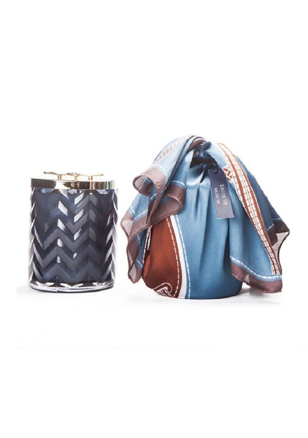 Cote Noire Herringbone Candle With Scarf Eau De Vie- Navy & Dragonfly Lid - HCG05